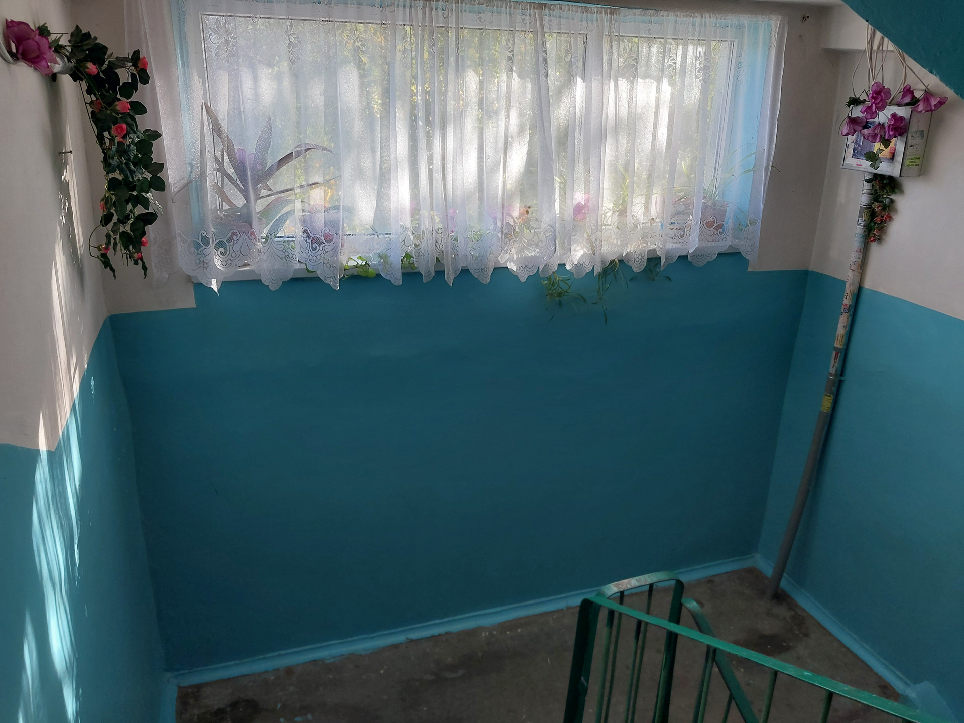 Заасфальтированный двор, очень чистый подъезд, замечательные соседи.