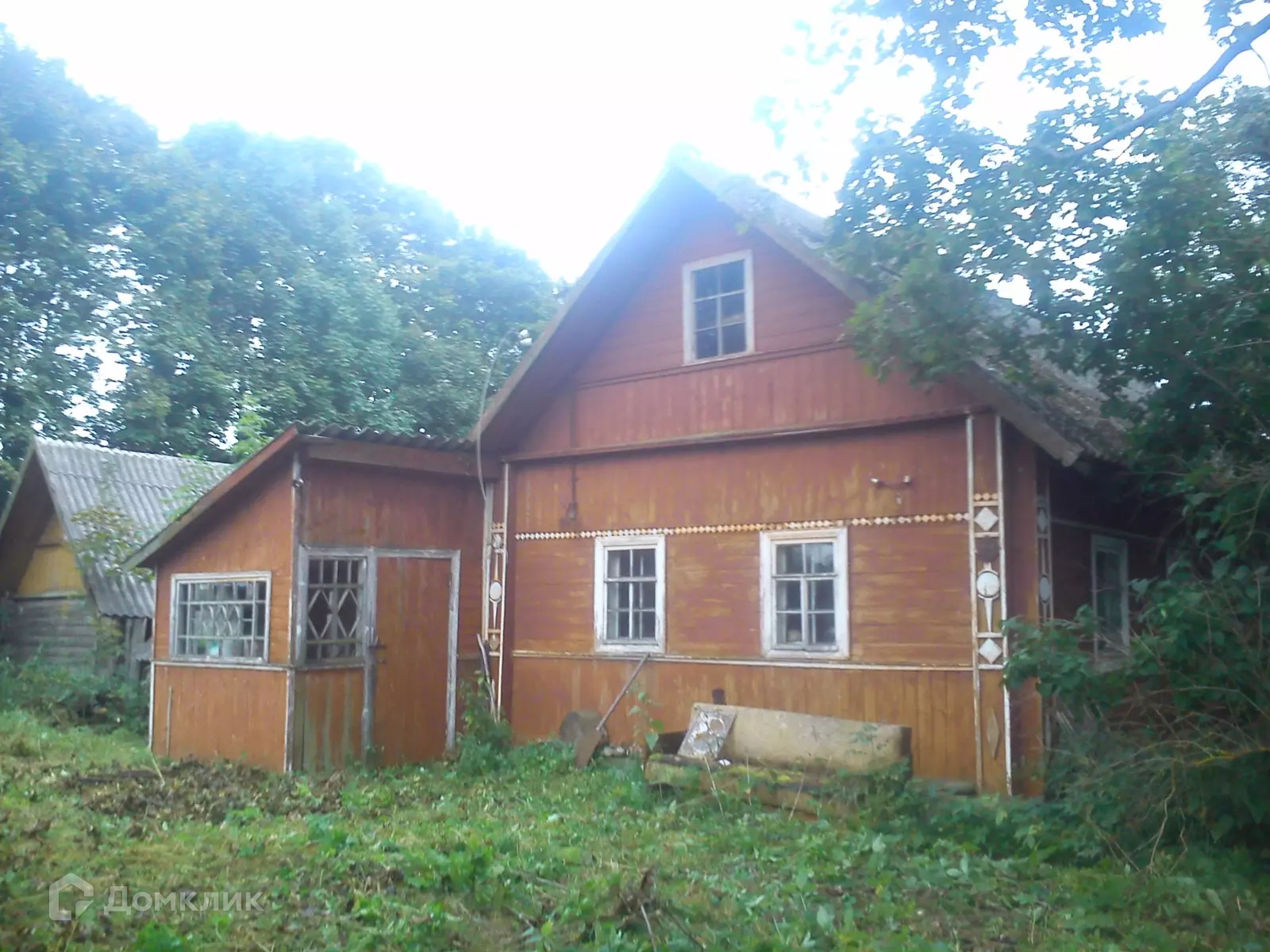 На участке старый домик с печью.