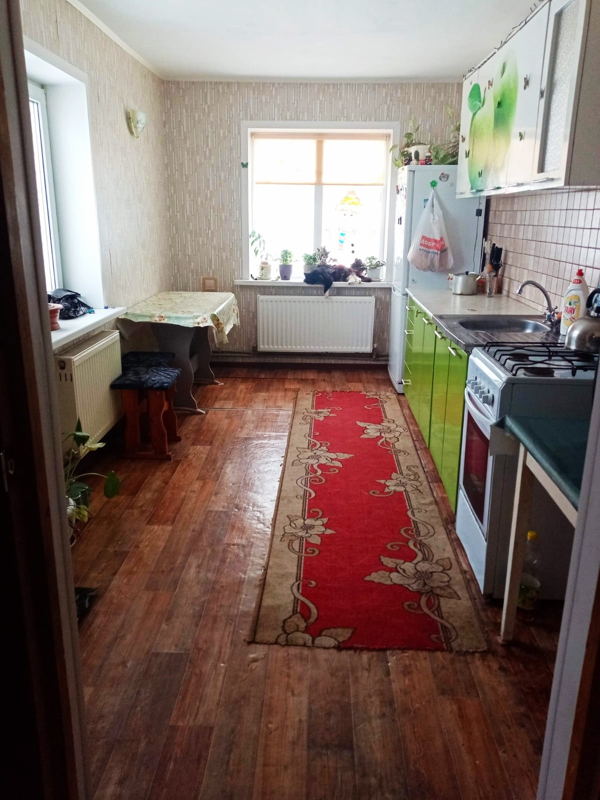 Коммуникации: дом газифицирован (отопление напольный котел). Состояние заходи и живи.