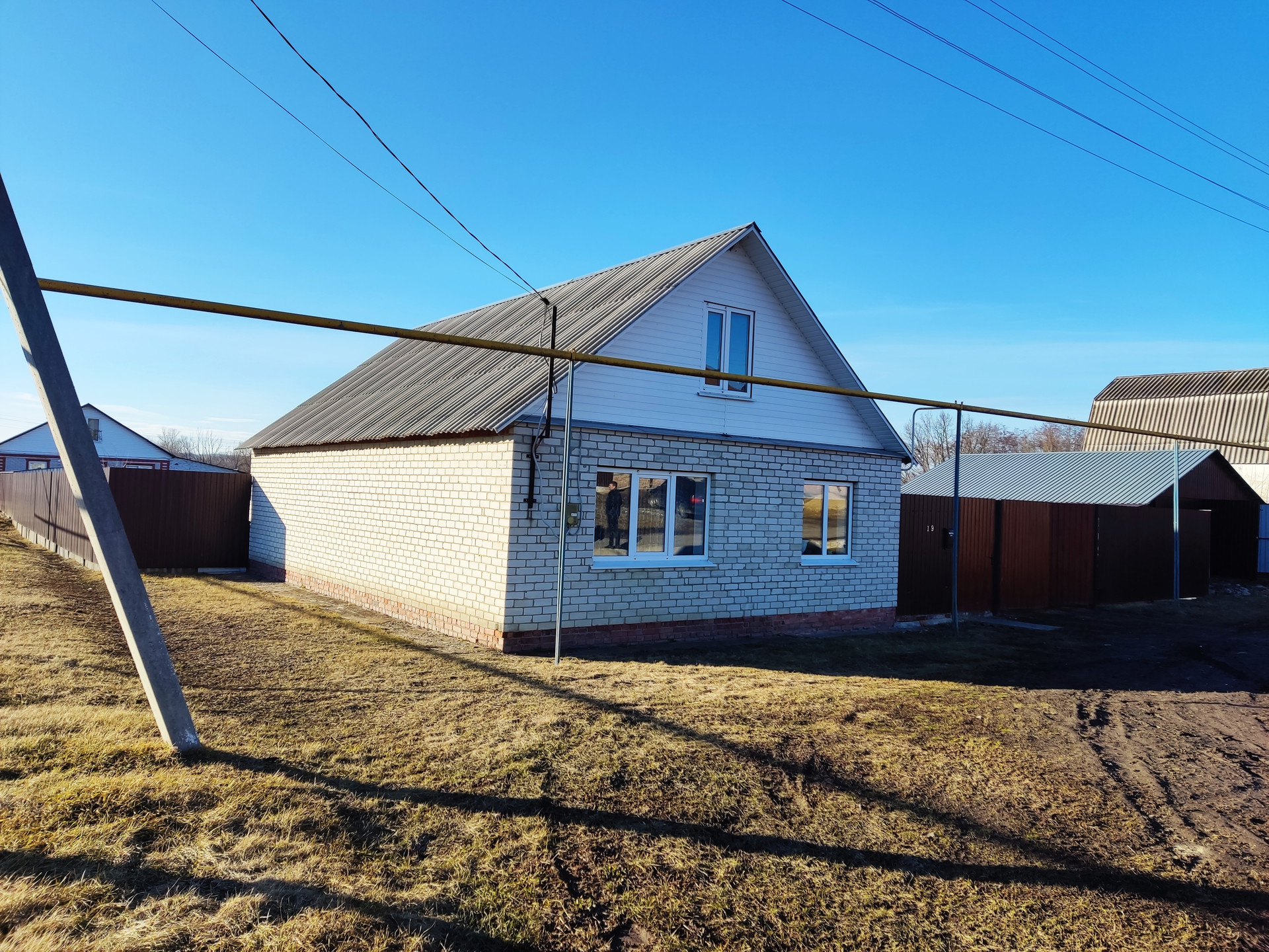 Общая площадь 64 м², год постройки - 2014 года. Материал строения: газосиликатный блок, облицован кирпичом, крыша - шифер, окна ПВХ, есть мансардный этаж.