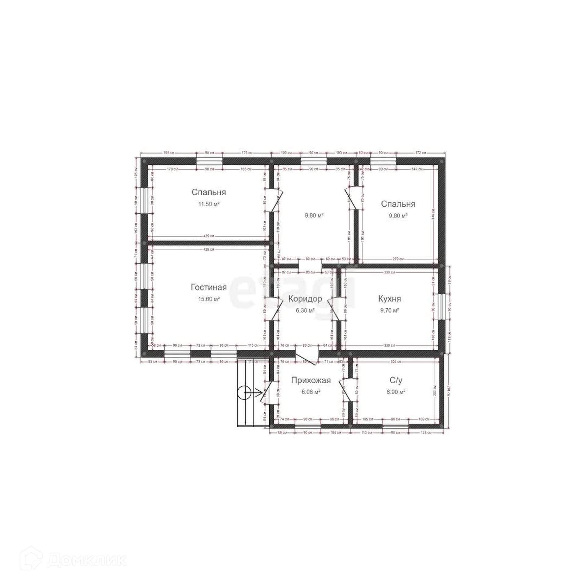 Общая площадь 74.7 м2