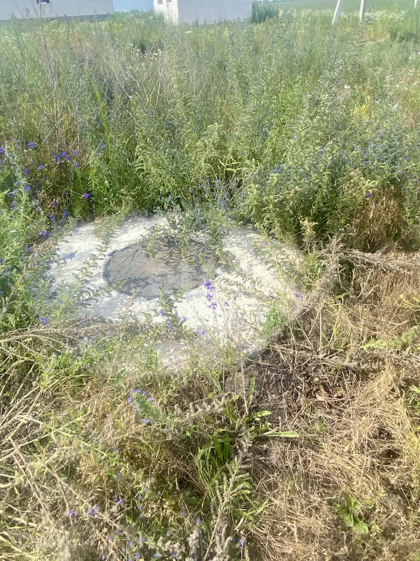 Участок угловой ровный, край участка чуть скошен и имеет небольшой уклон.