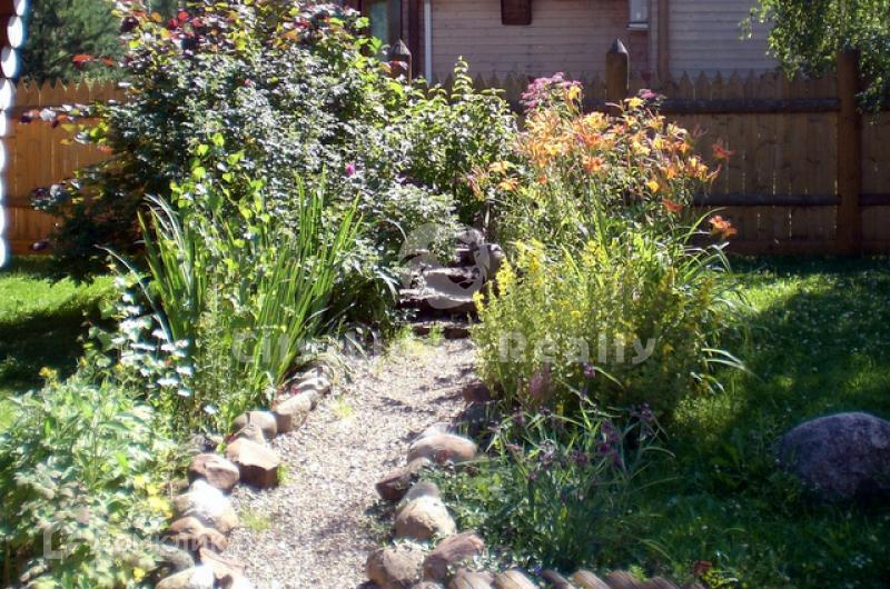 На участке в 12 соток оборудованы также места для отдыха: две беседки, по 5 кв.м, площадка для барбекю 50 кв.м, площадка с качелями и песочницей 110 кв.м, пруд с ручьём. Автостоянка на 10 машин. Территория огорожена и оснащена системой видеонаблюдения.