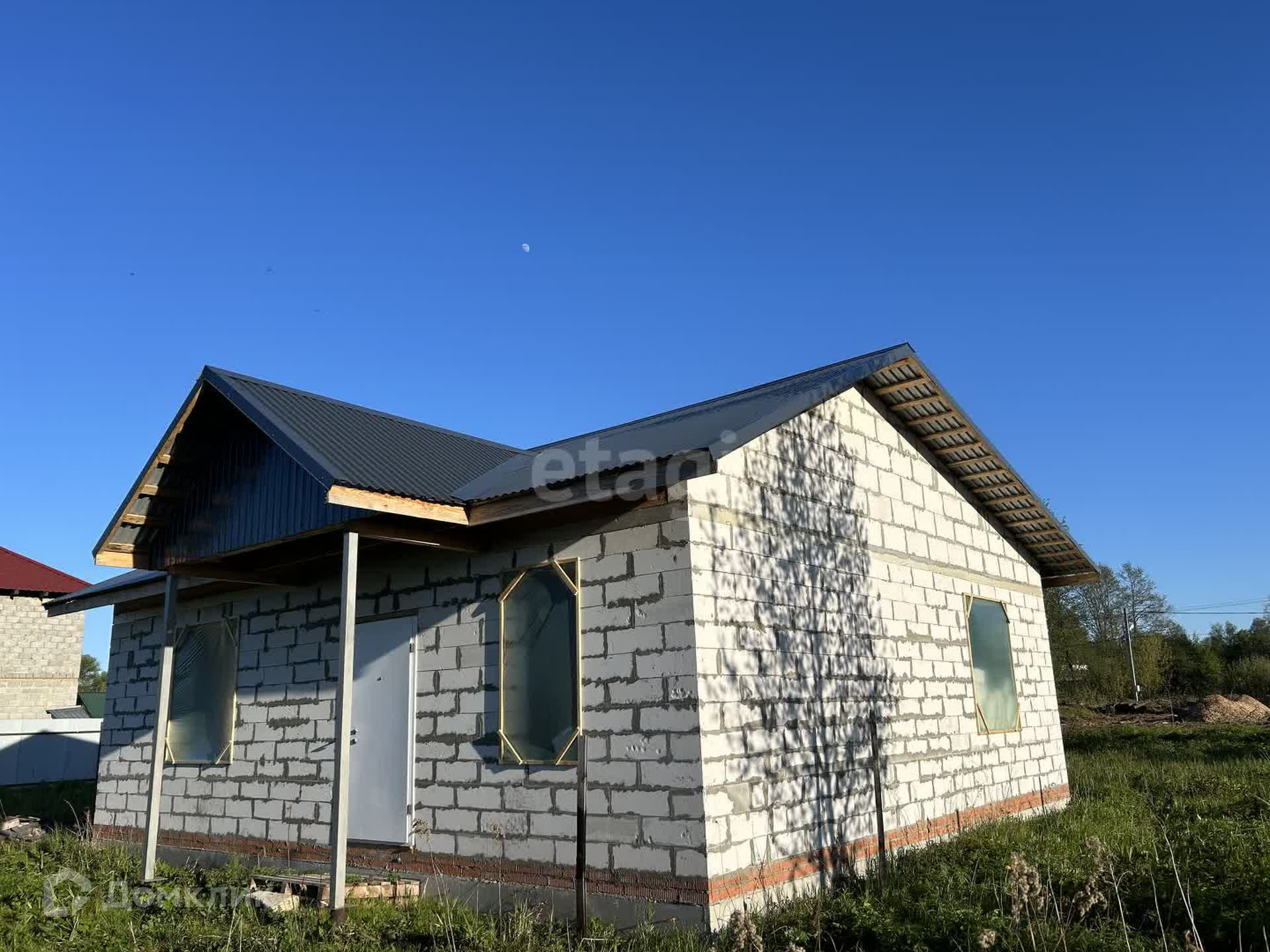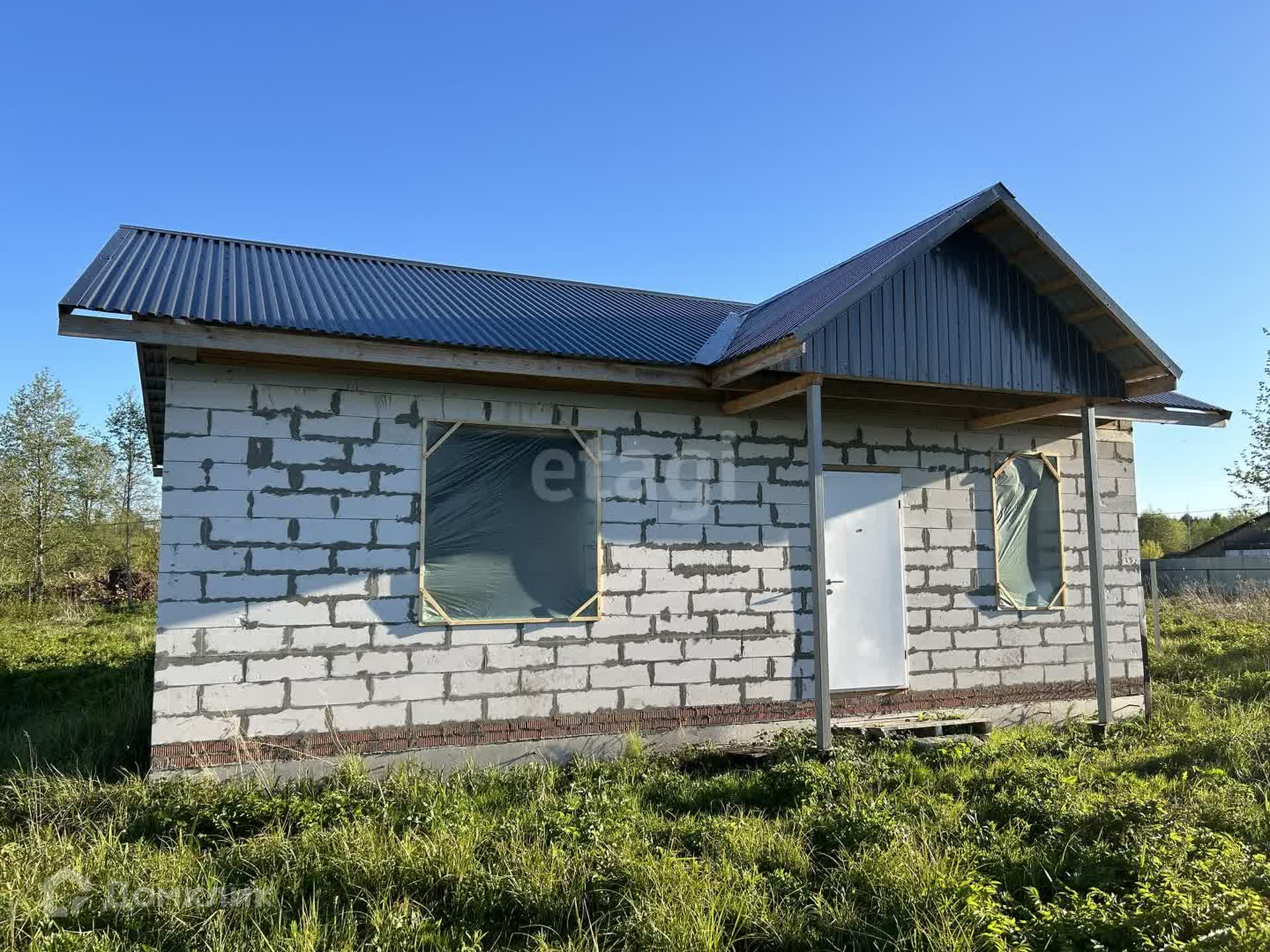 Дом из пеноблоков 82 кв. м на капитальном монолитном фундаменте 80 см (при необходимости можно надстроить 2 этаж). Сделаны все необходимые выводы под канализацию, воду, электричество. Толщина пеноблока 35 см, армопояс, перекрытие брус, крыша металлочерепица.