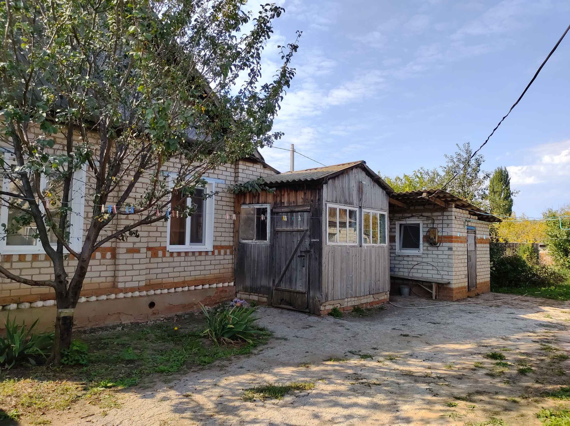 В доме три изолированные комнаты,зал и кухня,совмещённая с котельной,тёплый коридор. Требуется ремонт крыши над кухней и коридором. Дом угловой, Участок сухой, вода не застаивается, растут плодовые деревья. Большой гараж с ямой,баня под газ, требуется ремонт. Кирпичные сараи и летняя кухня.