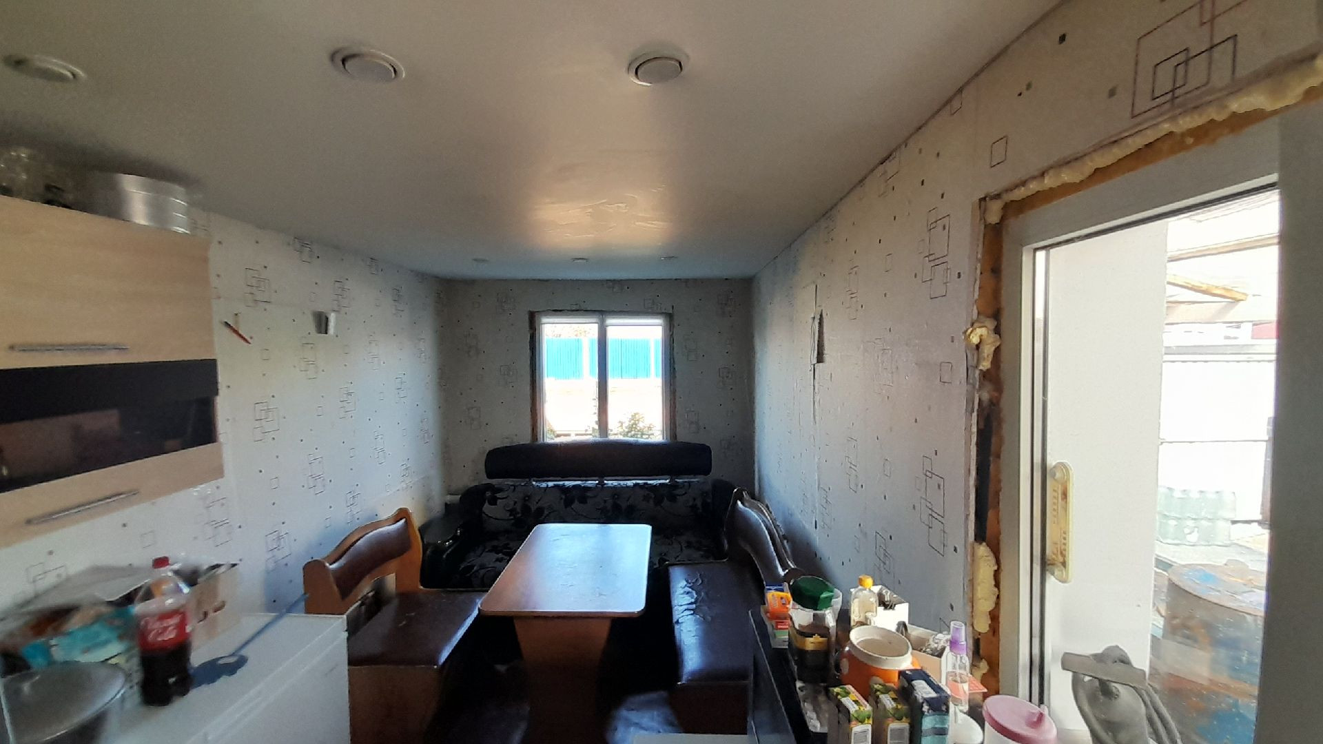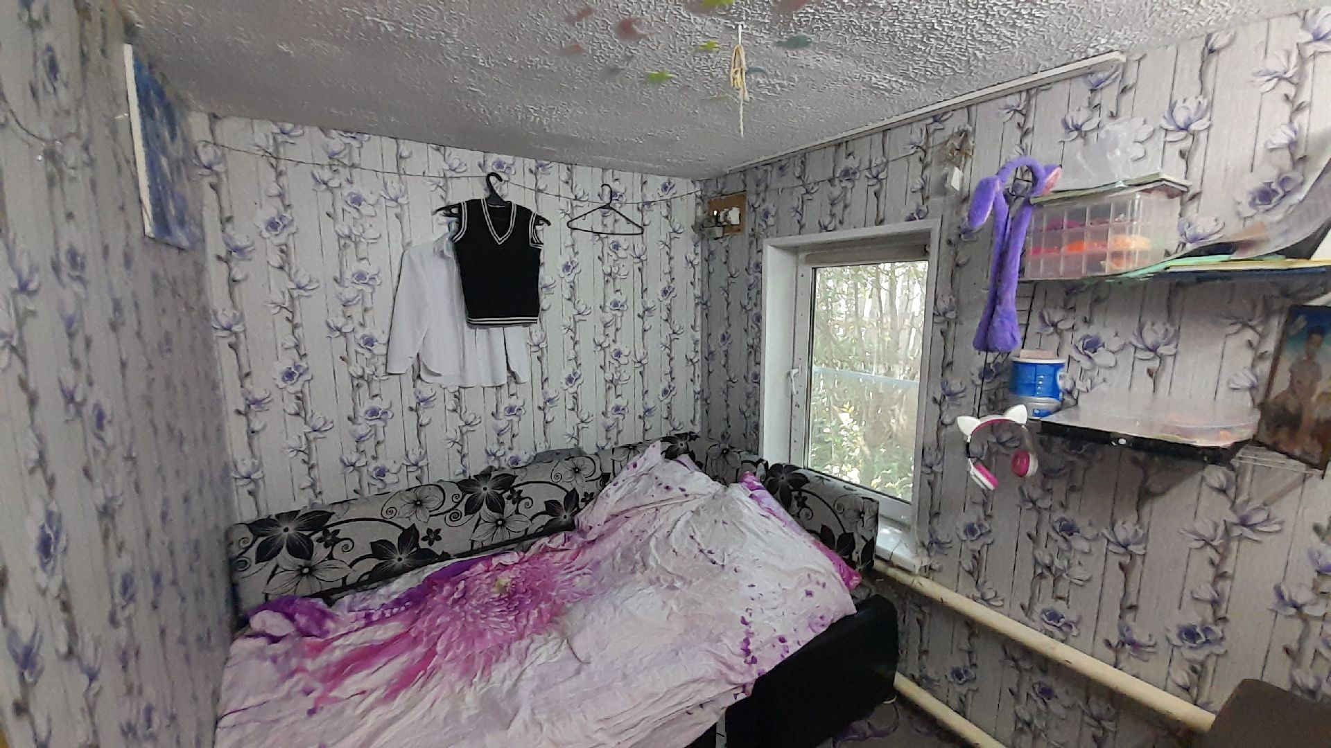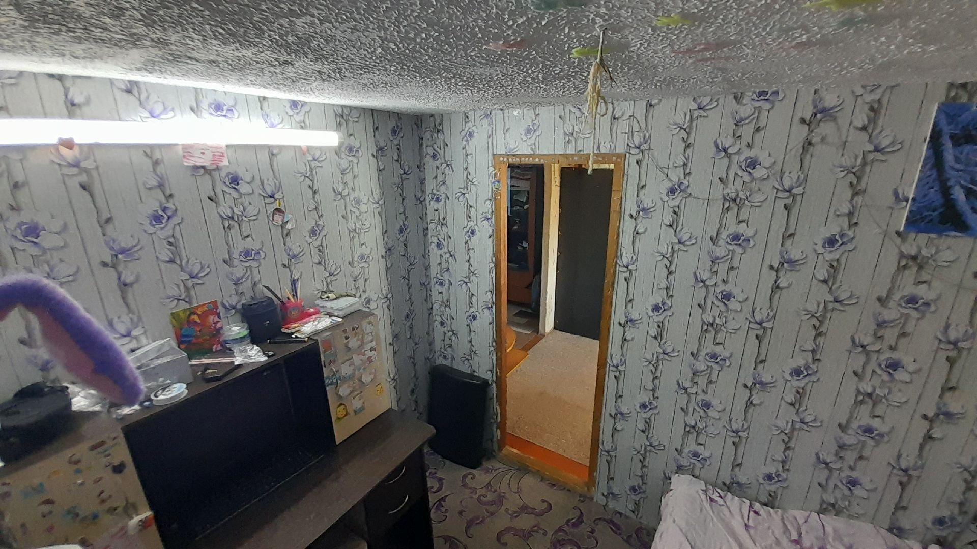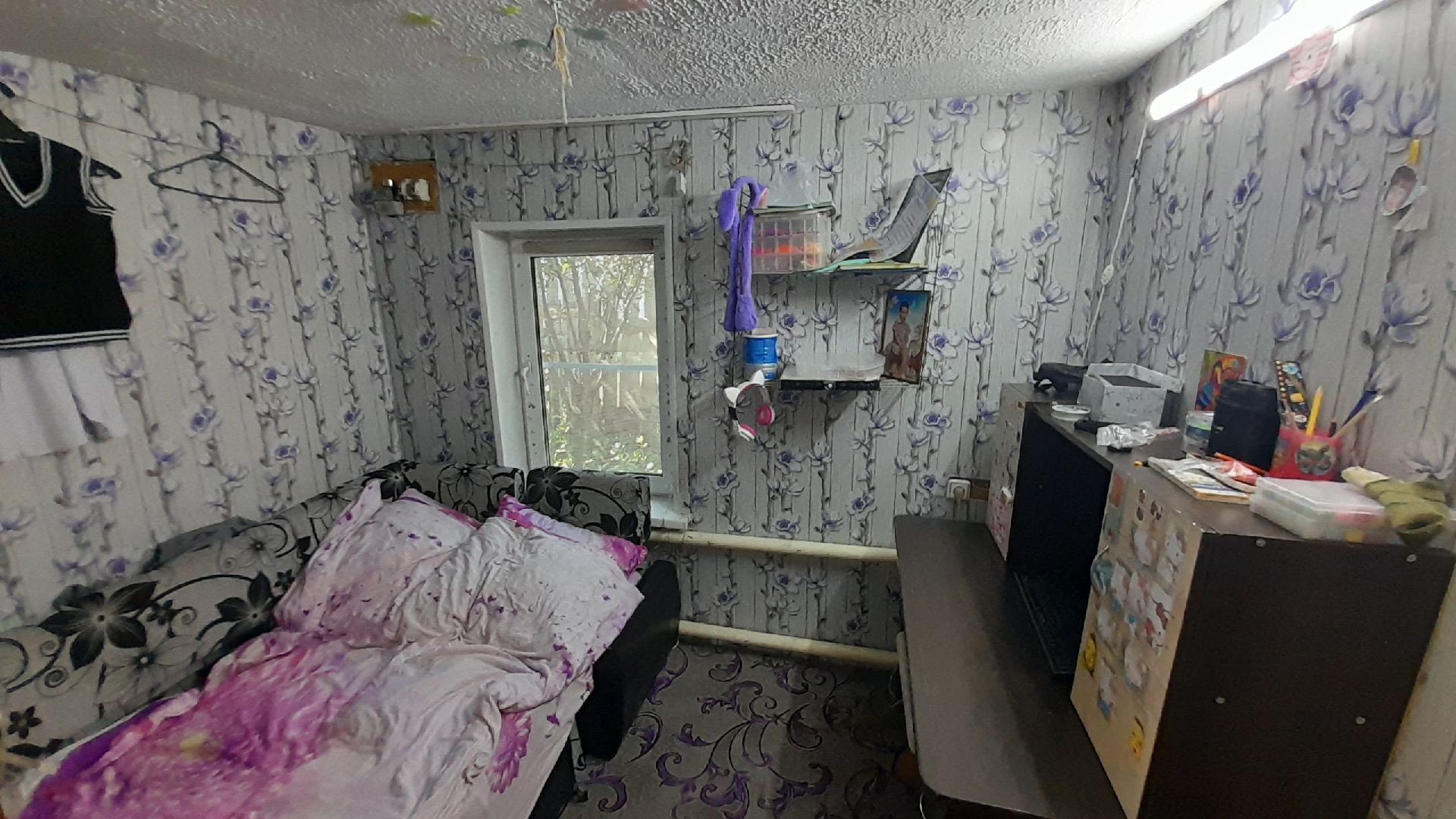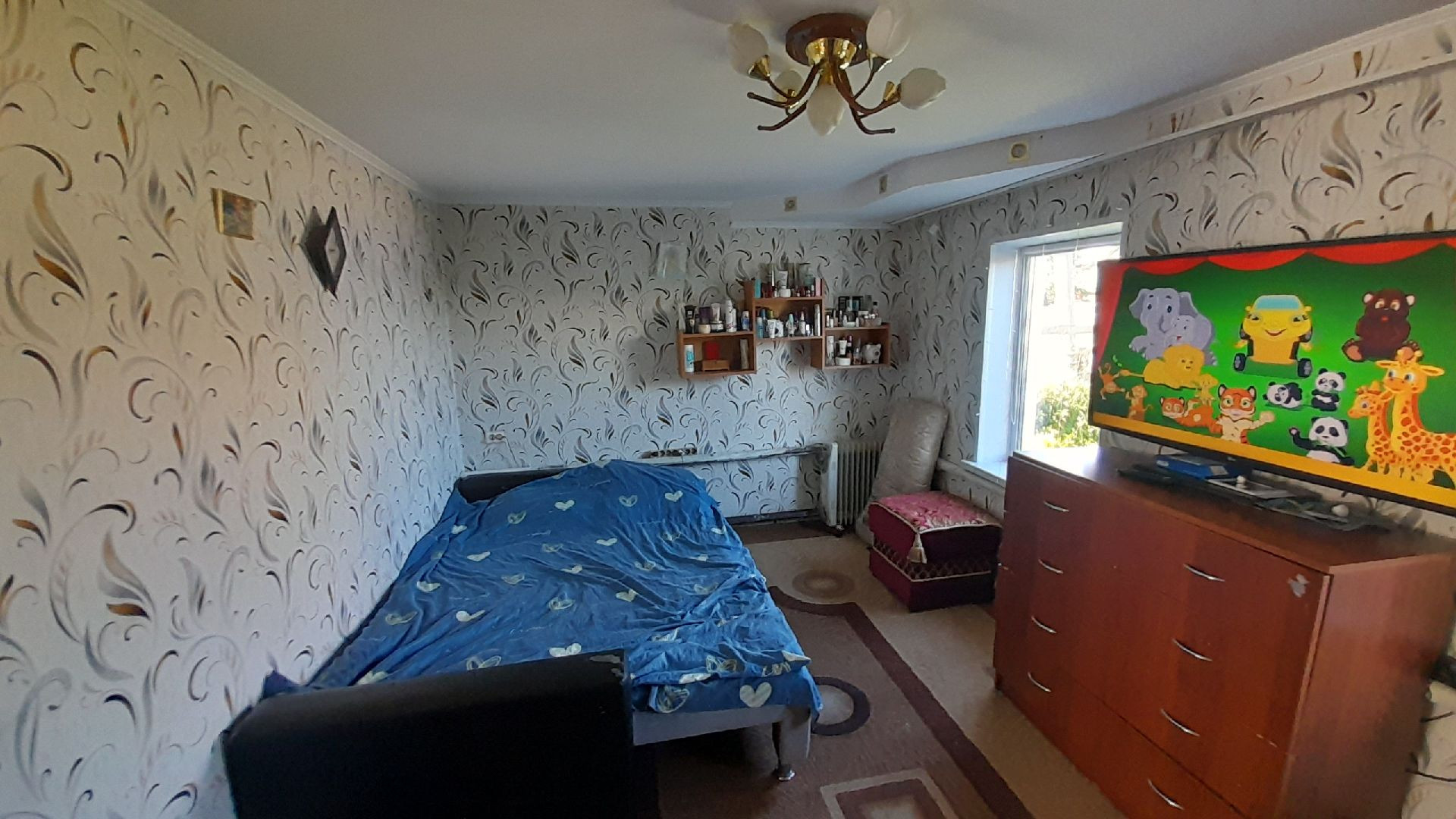 Две раздельные комнаты и зал, просторная кухня. В доме сделан косметический ремонт, установлены евроокна, натяжные потолки, линолеум. Высокие потолки, дом очень светлый.