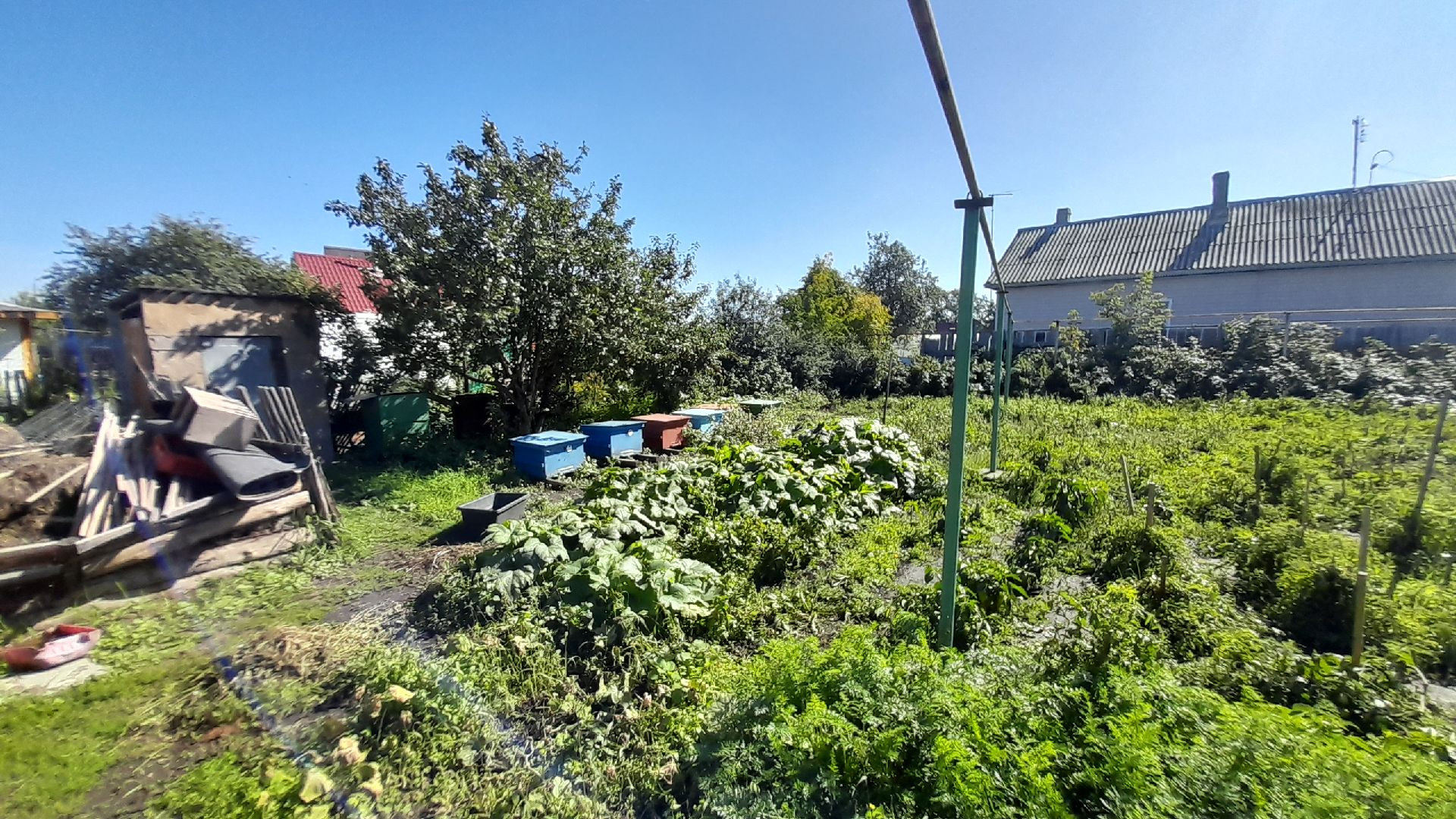 Участок правильной геометрической формы, ухожен, имеет множество посадок, и есть своя пасека пчелиная.