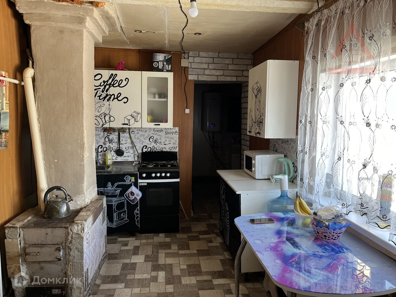 Три комнаты + кухня, сан/узел в доме, душевая кабина. Баня на газу.