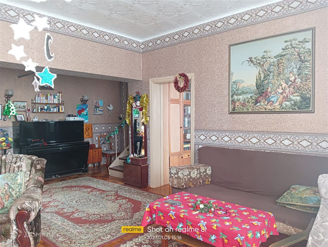 Предлагаем к продаже двухэтажный кирпичный дом в самом южном городе Омской области, Русская Поляна. Дом полностью благоустроен, газовое отопление, центральный водопровод, электричество 3 фазы. Построен в 1993 году из кирпича, с толщиной стен в 2,5 кирпича, капитальный фундамент. Участок облагорожен, вокруг дома обустроен пышный сад, здесь выращены и плодоносят многолетние деревья и кустарники: несколько видов яблонь, малина, вишня, смородина и др. Внутренний дворик обустроен под зону отдыха с фонтаном и ручьем, выложены садовые дорожки, беседка для отдыха увита виноградом, установлены теплицы для овощей и зелени. Двор выложен тротуарной плиткой, во дворе теплый гараж, баня, летняя кухня, хозяйственные постройки. Во все перечисленные помещения можно попасть, не выходя на улицу. В доме 4 лоджии, на первом этаже кухня-столовая, зал, библиотека и раздельный санузел, на втором этаже 4 спальни, мастерская и санузел второго этажа.