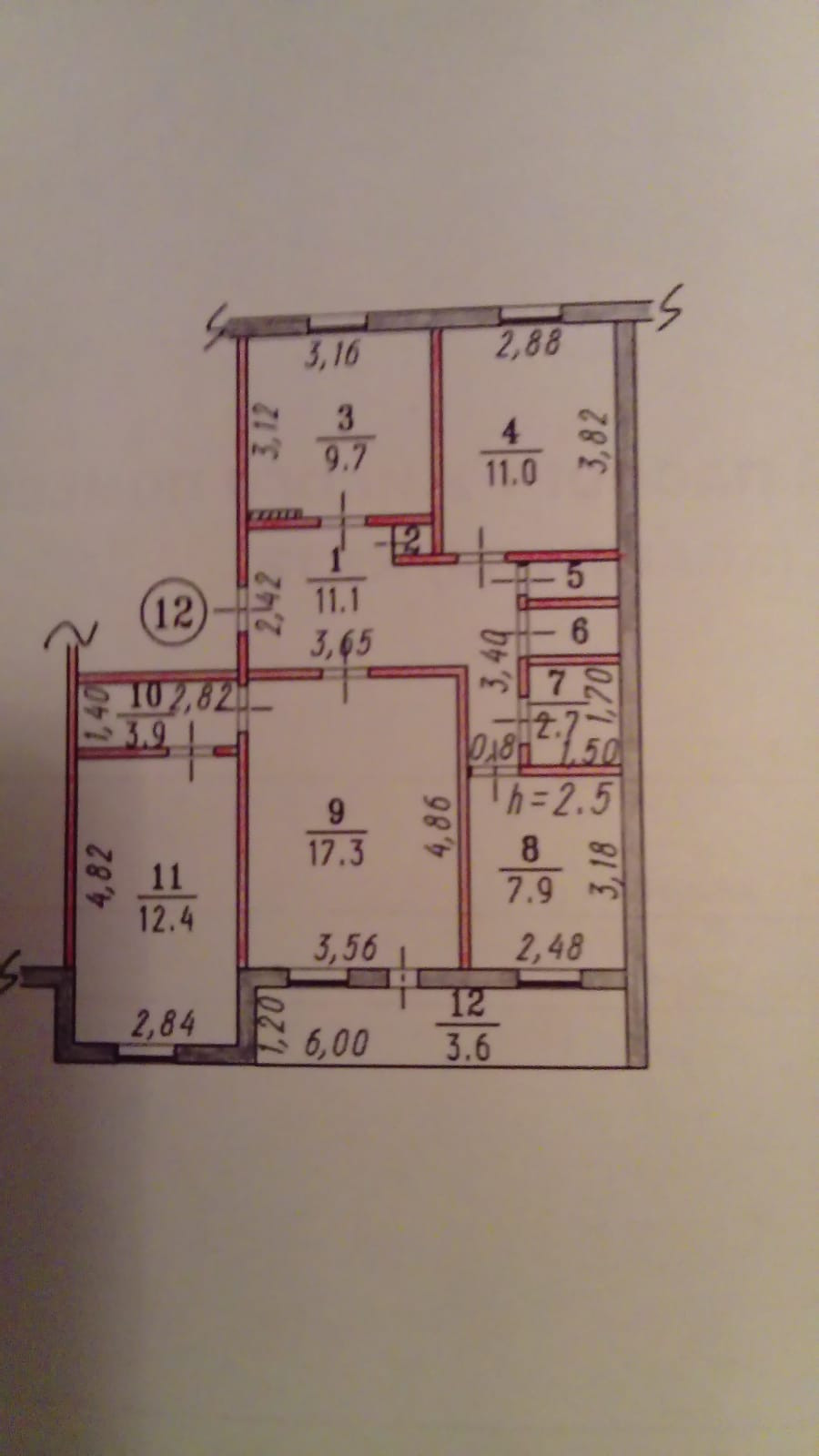 Высота потолков 2.5 м