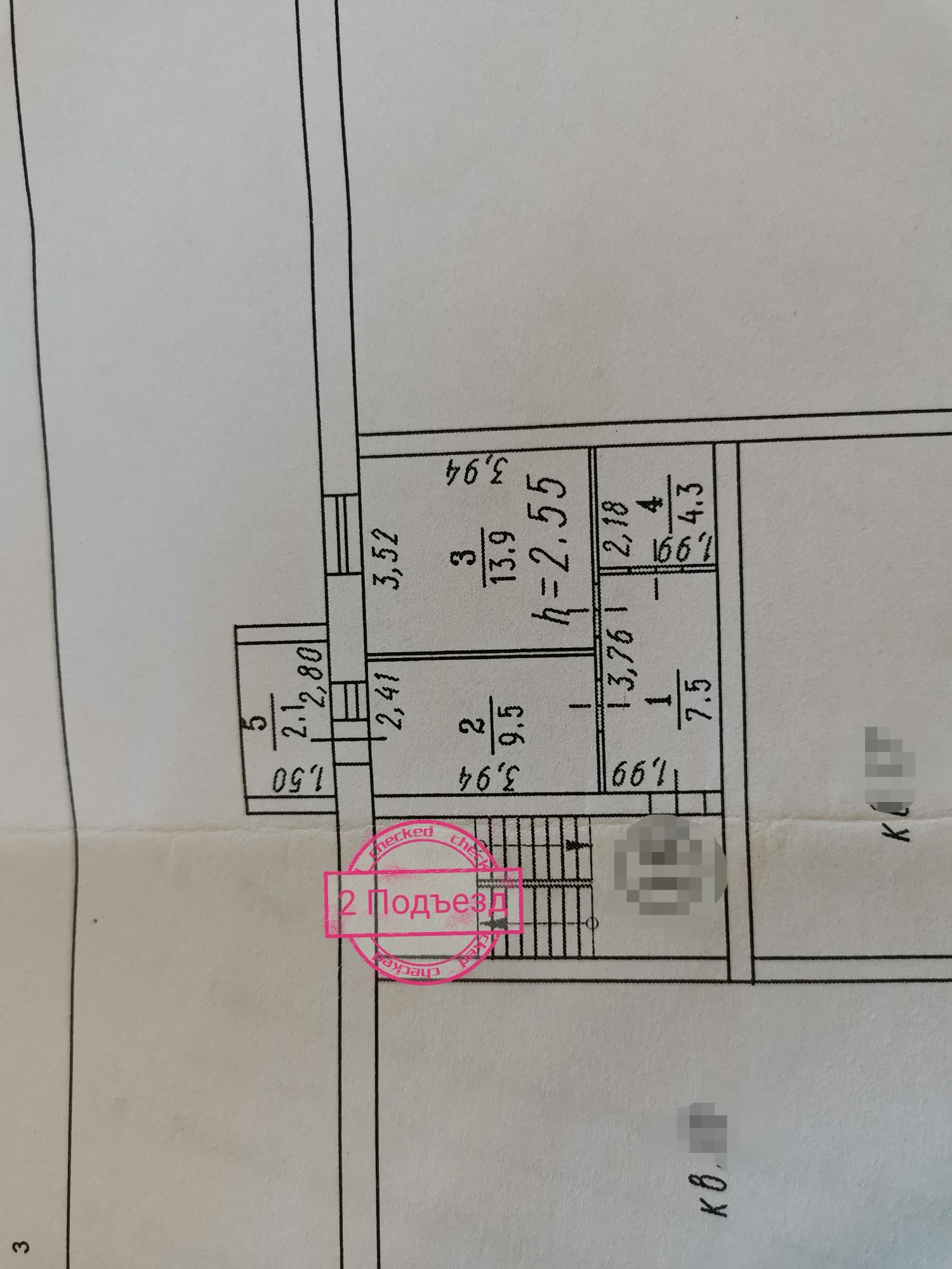 Высота потолков 2.55 м