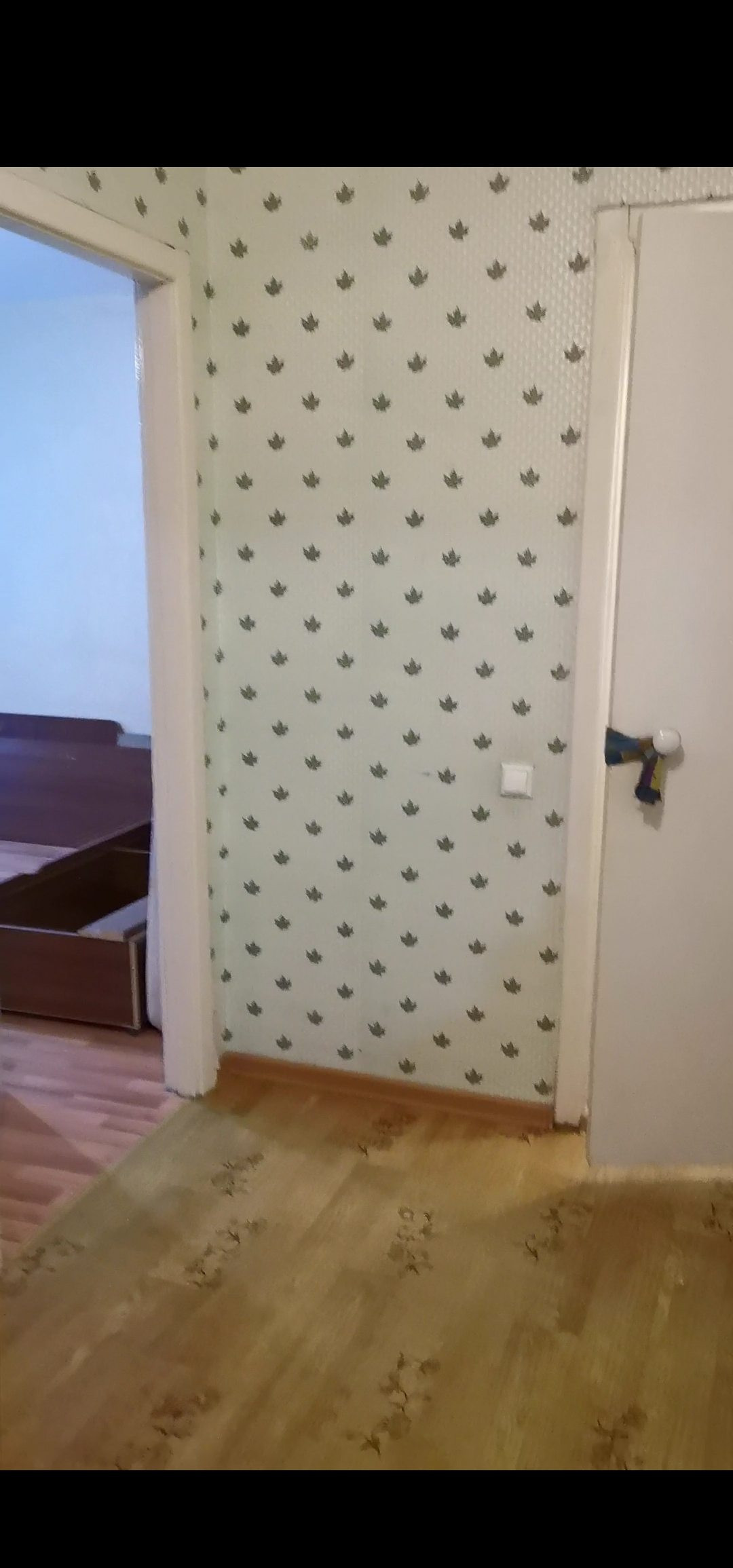 Пол - линолеум, стены- обои. потолки-окрашены.