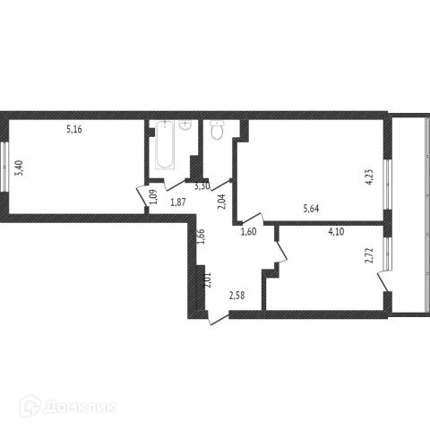 Общая площадь 60.4 м2