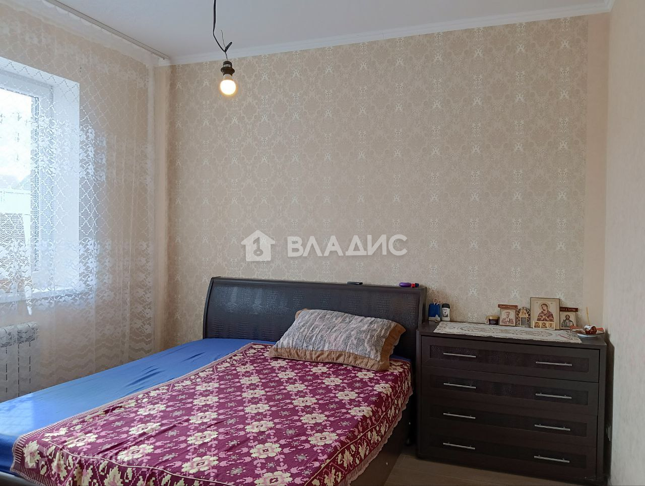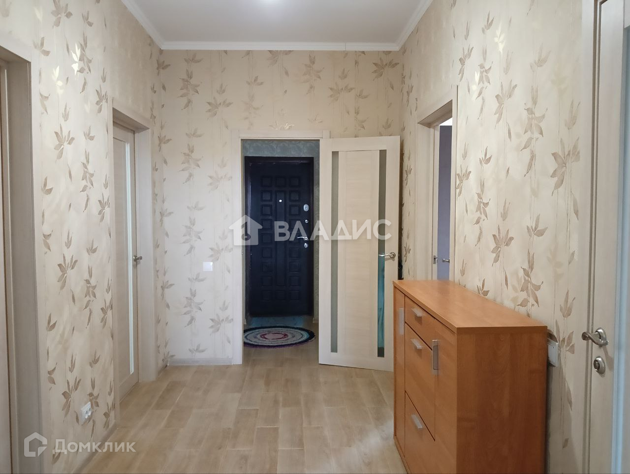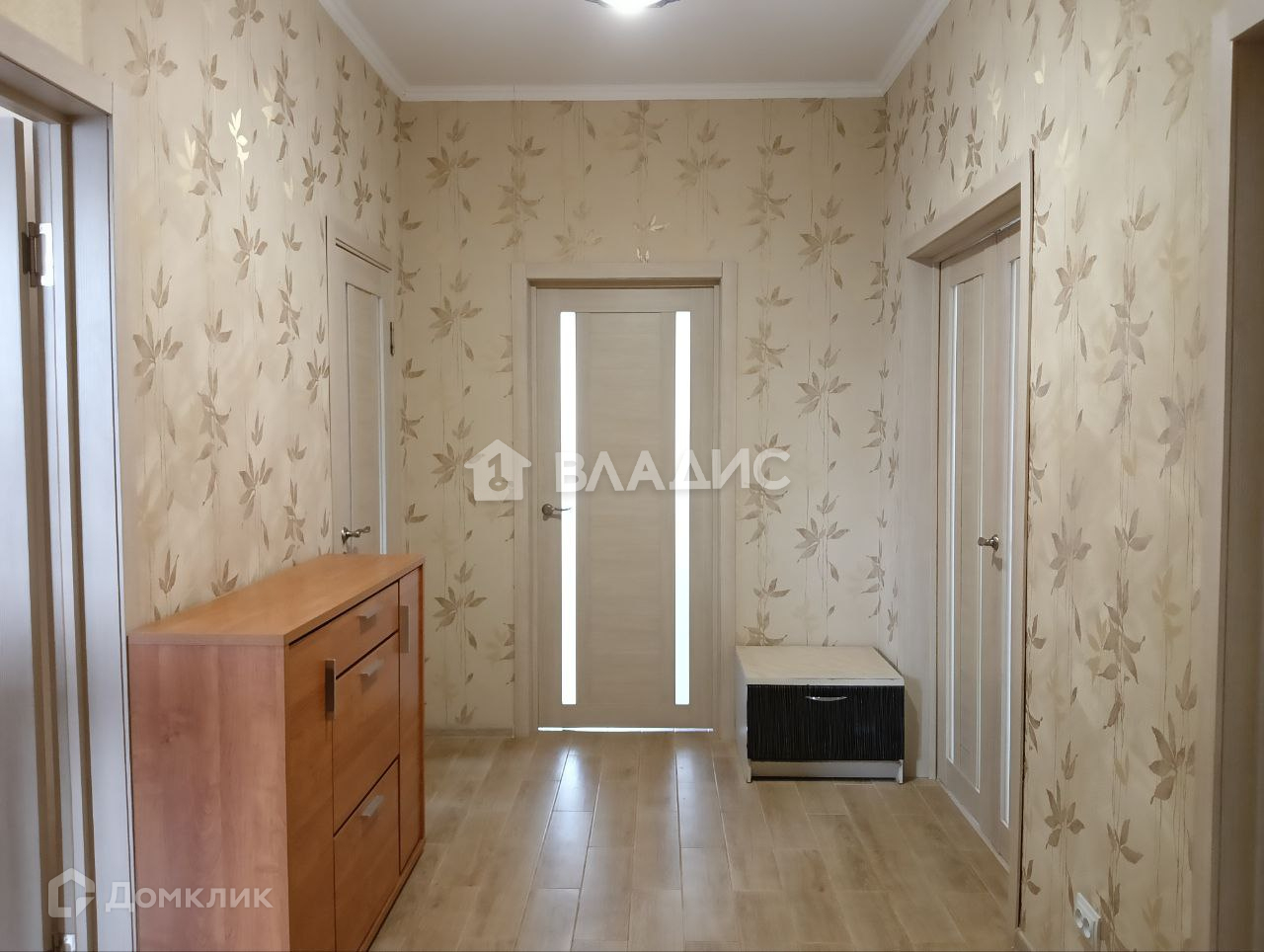 Стены оклеены современными обоями.