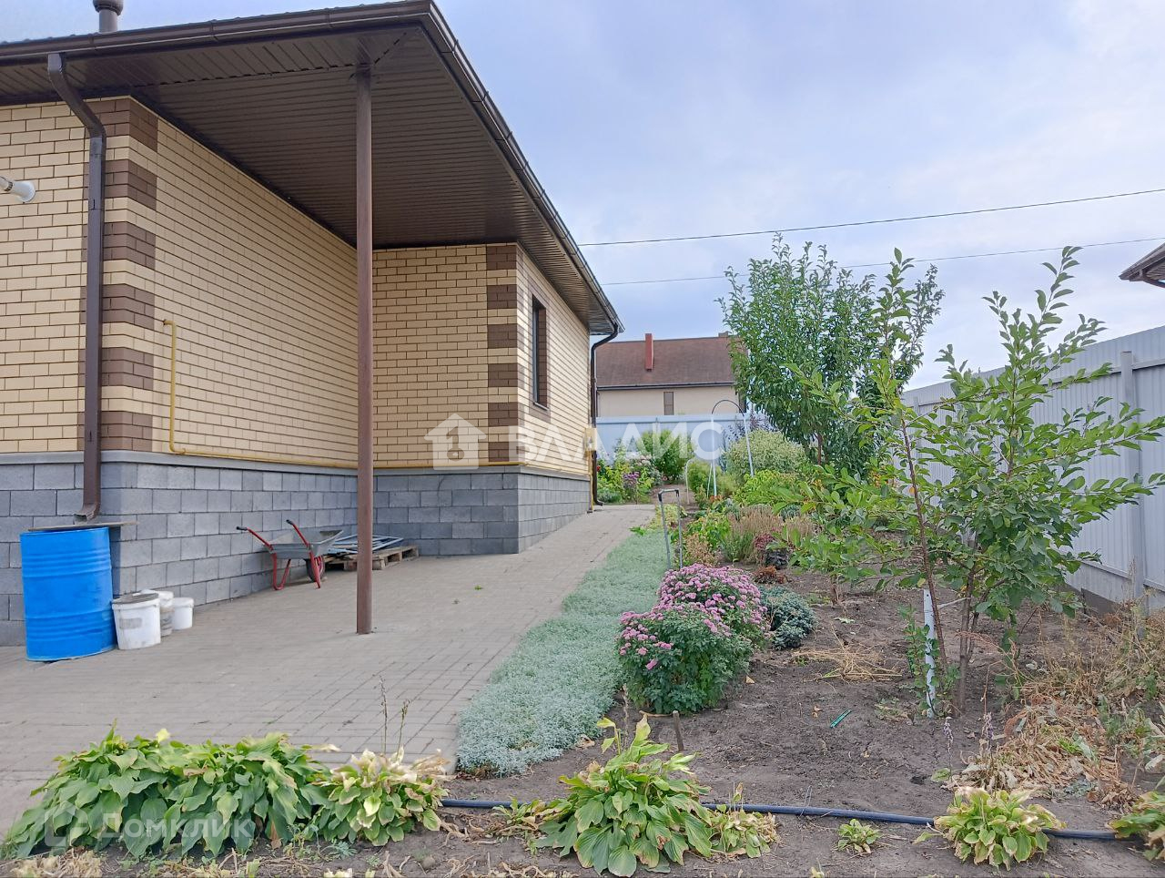 Участок полностью ухожен, много разных цветов, плодово-ягодные деревья, кустарники, декоративные кустарники,отличная малина, молодой плодоносящий сад, двор и отмостка дома выложены плиткой.