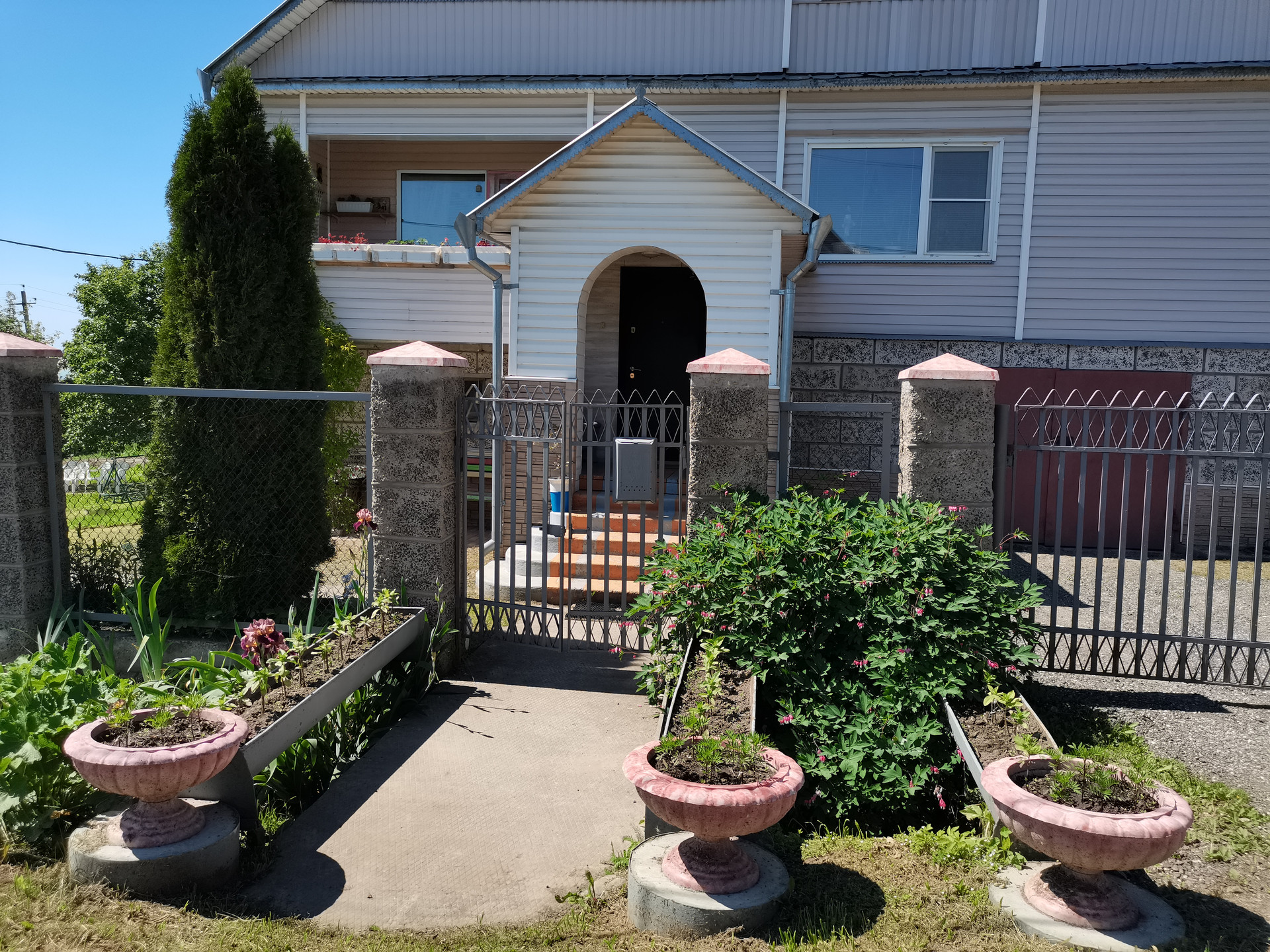 ☝Дом построен из бруса, железобетонных блоков и жбт плит перекрытия. Покрыт сайдингом.