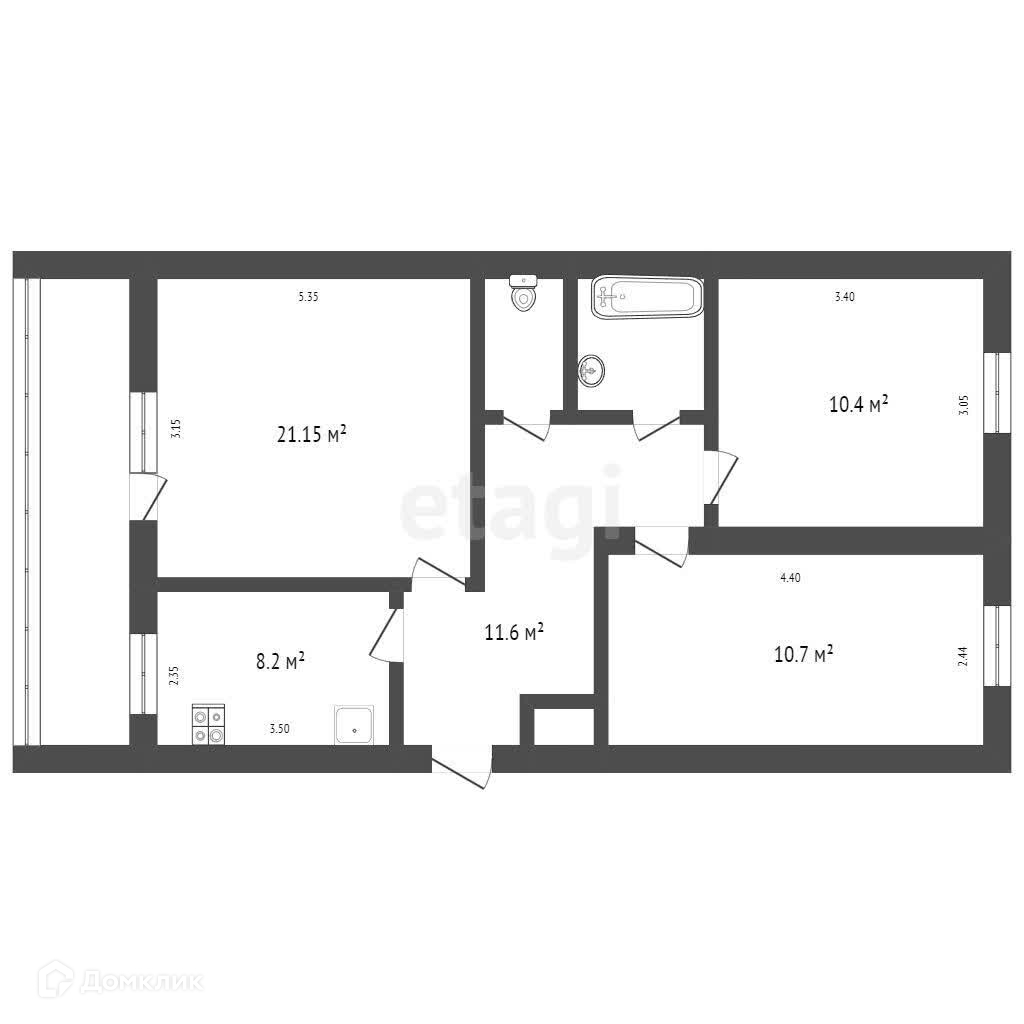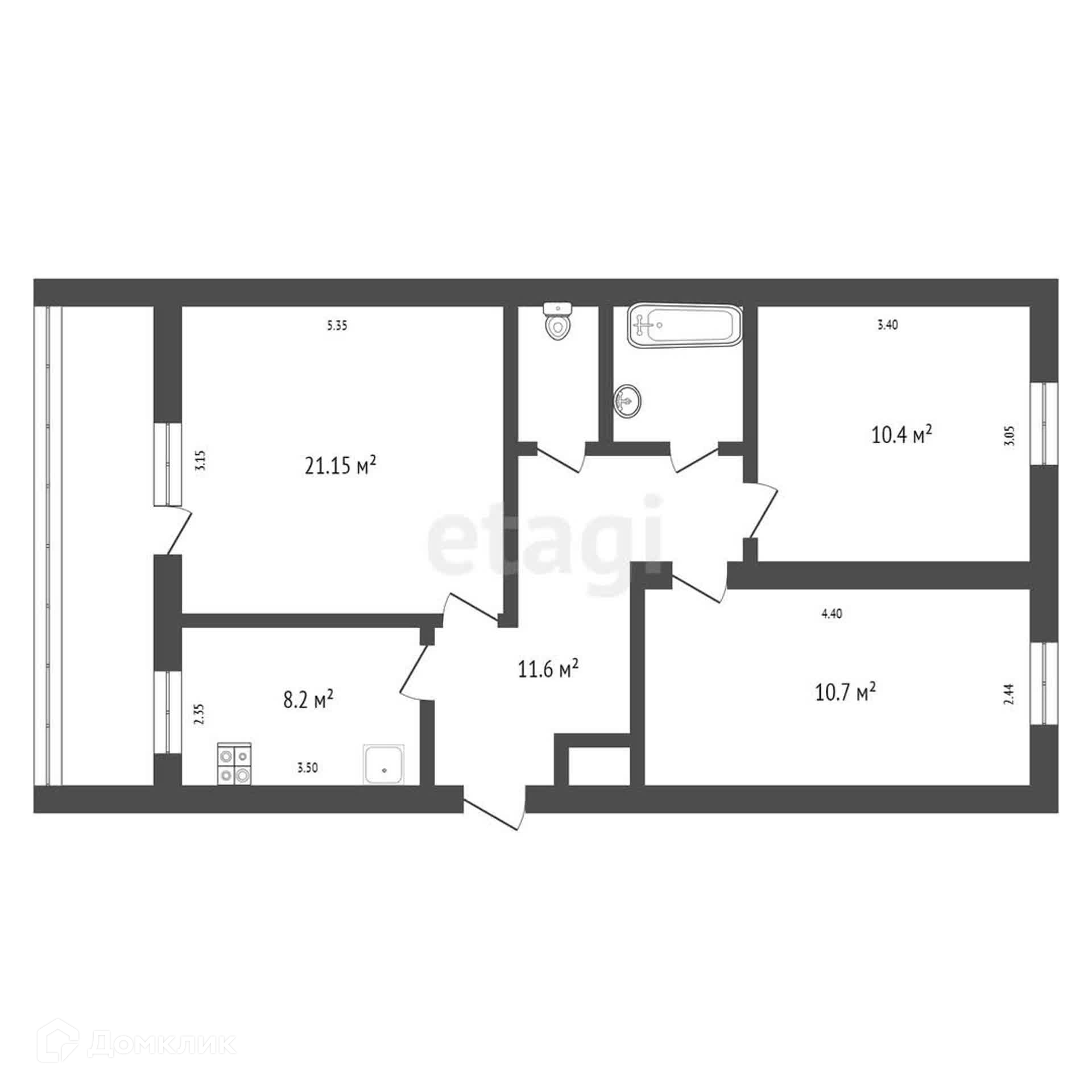 Общая площадь 63.1 м2