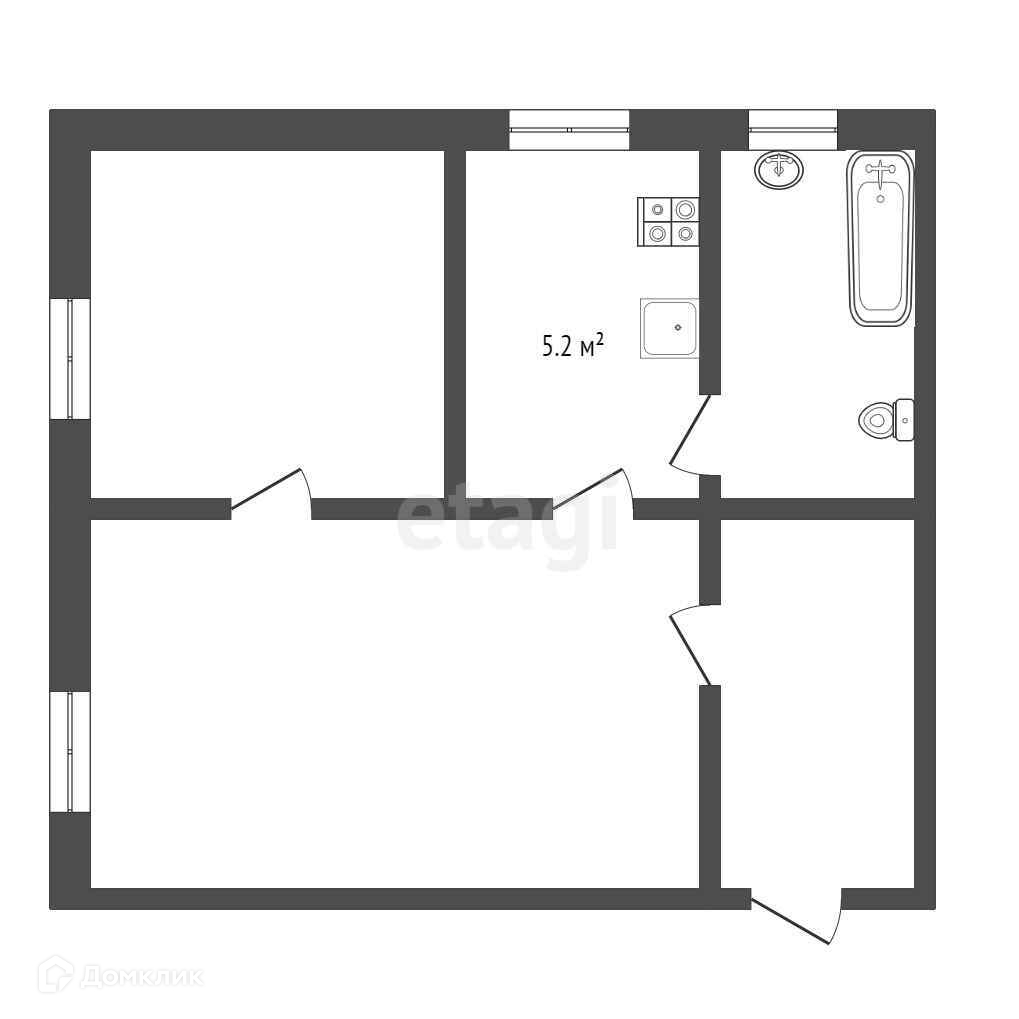Площадь кухни 5.2 м2