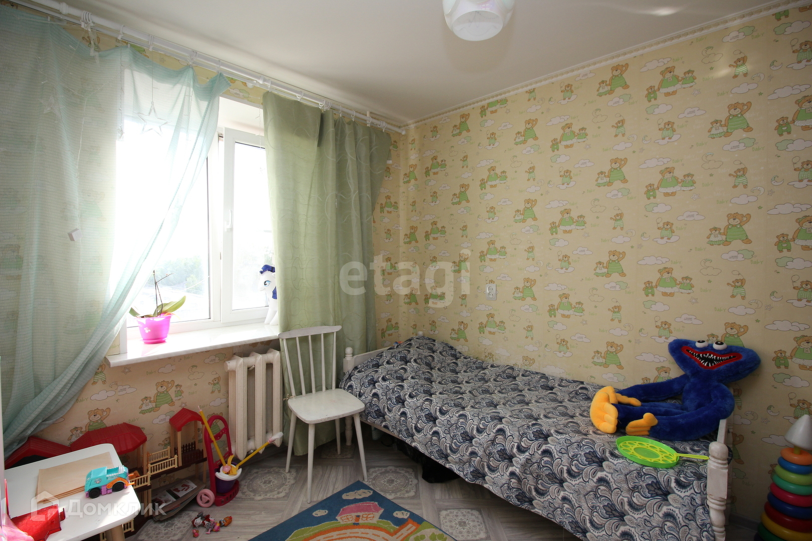 Квартира расположена на 4м этаже капитального кирпичного жилого дома, имеющего отличную изолированную придомовую территорию с большим количеством парковочных мест, детской площадкой, спортгородком.