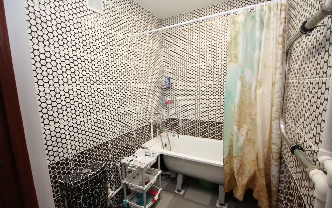 С/у совмещен, стены и пол выполнены плиткой, водопроводные трубы пластиковые, установлены приборы учета холодной и горячей воды, что способствует экономии на коммунальных платежах.