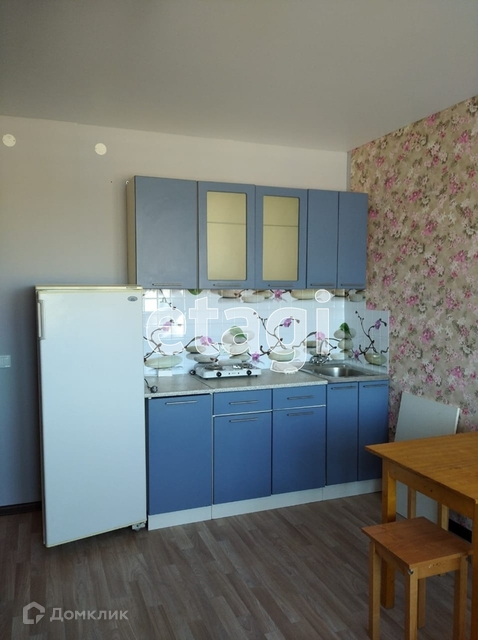 Квартира полностью обустроена всей необходимой мебелью и бытовой техникой: кухонный гарнитур, шкаф, два спальных места, стиральная машина, холодильник.