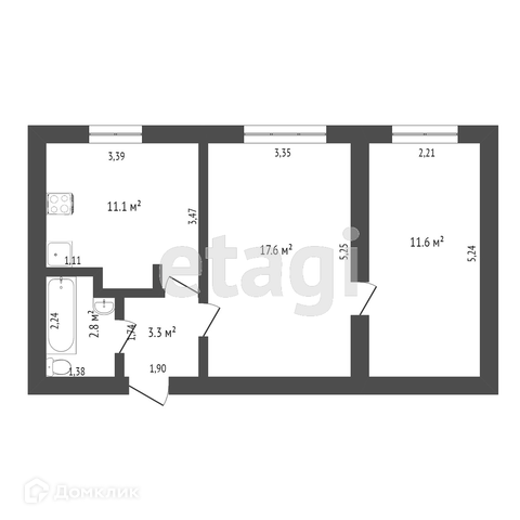 Общая площадь 46.4 м2