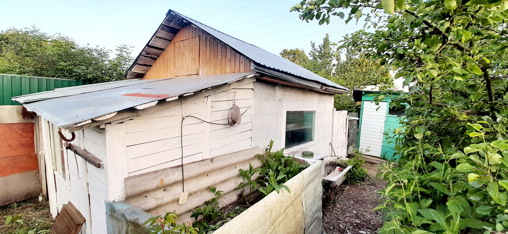 На участке также летний каркасный дом, выделена в собственность отдельная половина площадью 30 м². Также на участке хозблок из пеноблоков 16м², используется как круглогодичный птичник (куры, цесарки, перепела), а также загон для мелкой живности. Надворный классический туалет. По границе участка центральный водопровод, поселковая канализация.