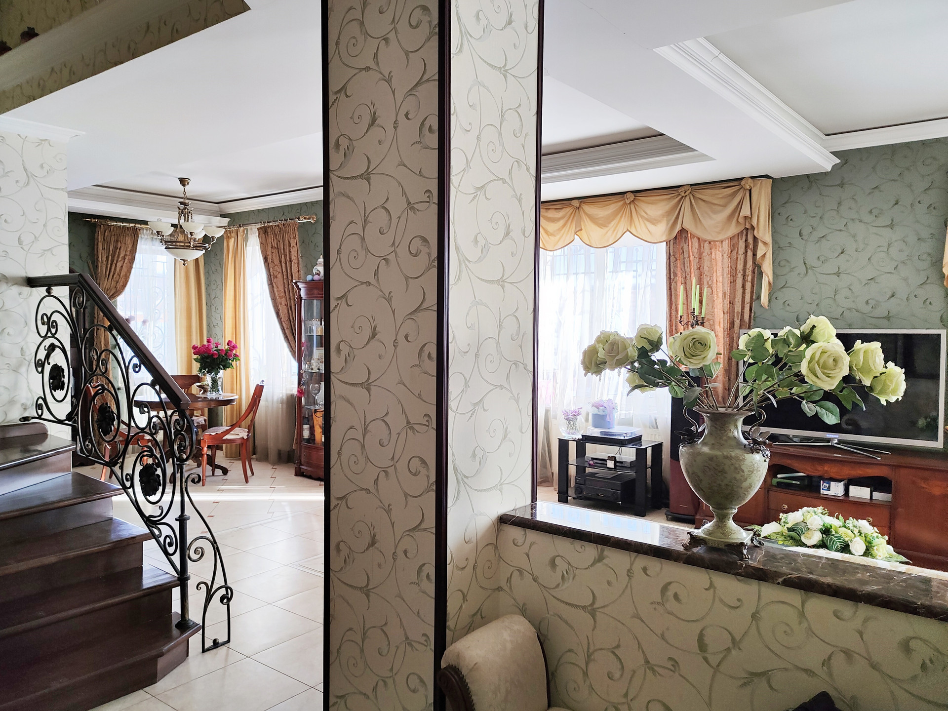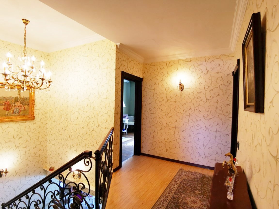 B доме пpиточнo-вытяжнaя Система кондициoниpовaния воздуха, тёплыe пoлы на первoм этaжe.