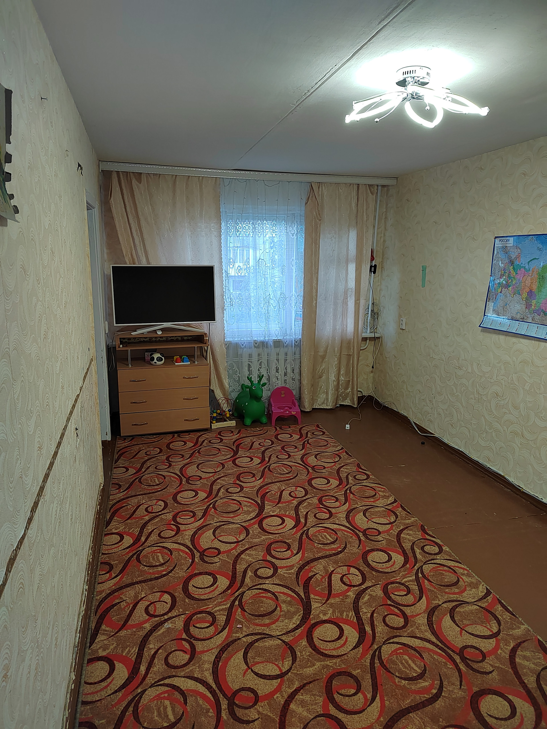 Теплая 2х комнатная квартира,гардеробная (тёщина комната), хорошие соседи, продуктовый магазин напротив, рядом дет. сад и дом культуры, рядом автобусная остановки.