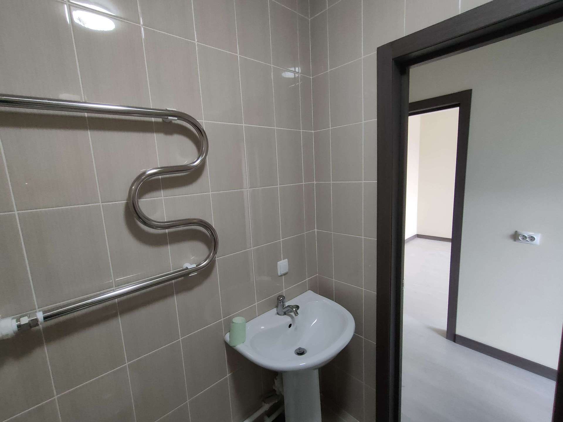 В новом доме,новая квартира. С хорошим ремонтом. Натяжные потолки, санузел стены и пол кафель , пол ламинат. Очень теплая. В квартире никто не прописан и не проживал . Один взрослый собственник.