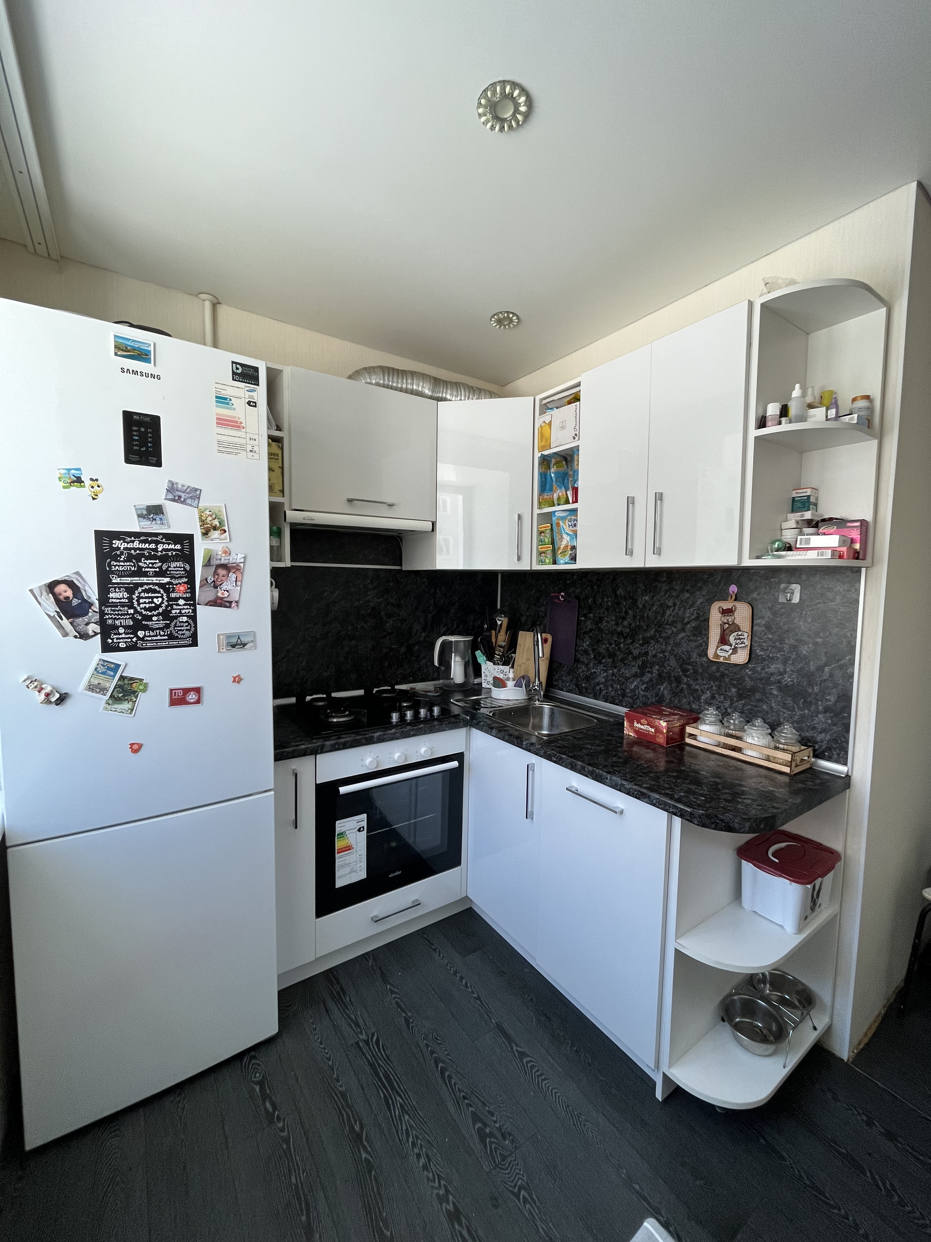 Полностью оставляем кухню(посудомоечная машина,холодильник в том числе).
