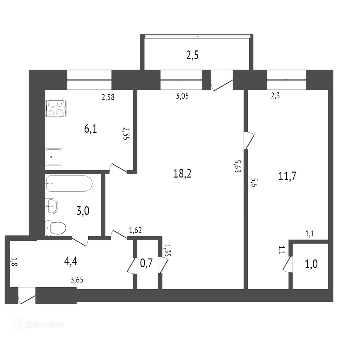 Балкон, лоджия 1 балкон