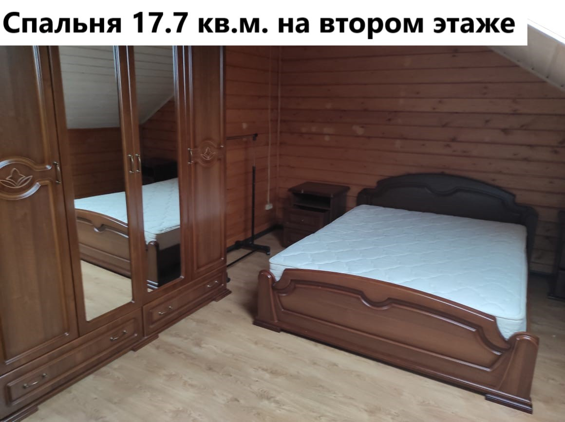 Второй этаж: коридор 10.8 кв.м, спальня 17.7 кв.м. ( двуспальная кровать с матрасом, бельевой шкаф с зеркалами, комод), комната 14 кв.м.