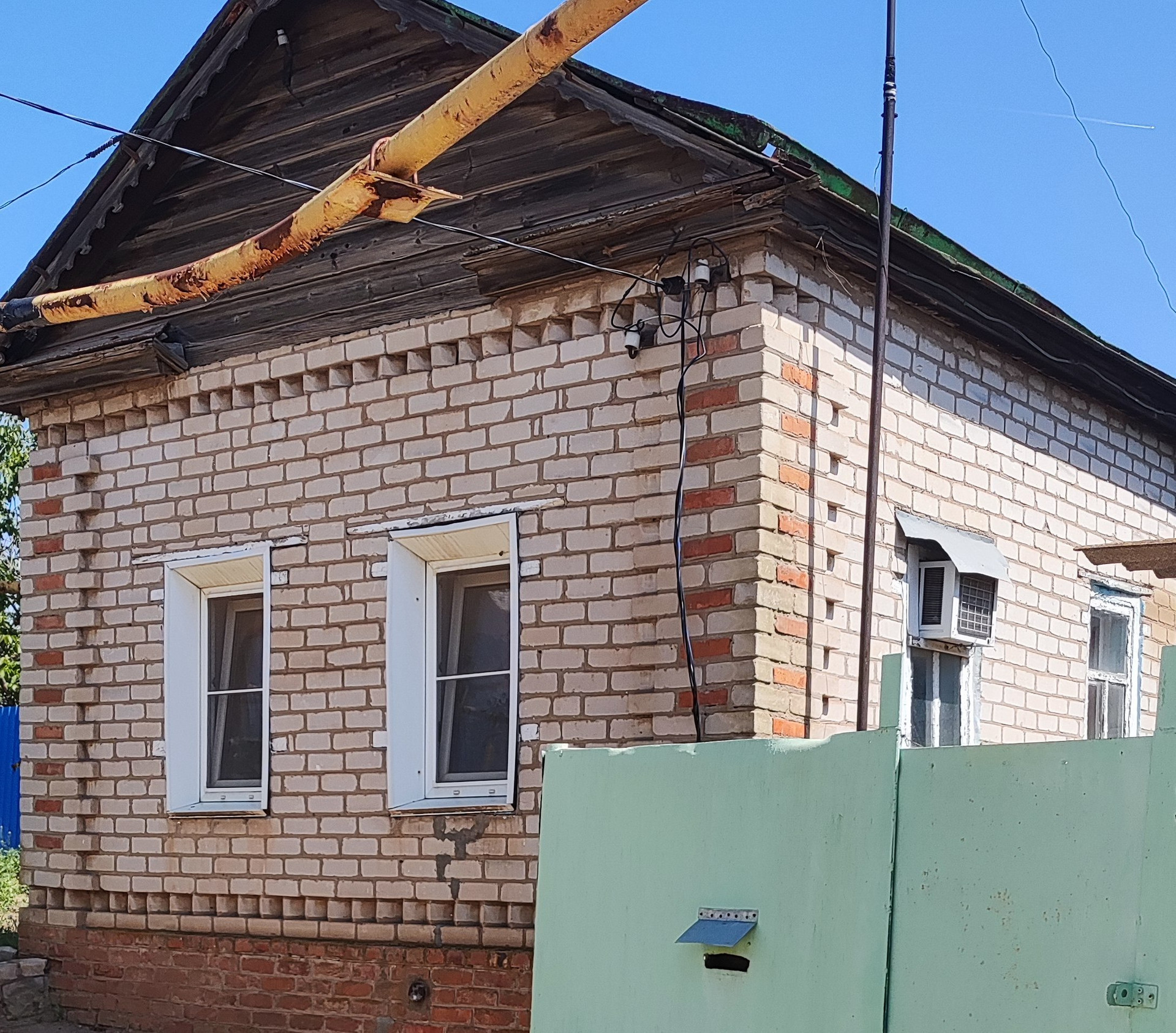 Дом, деревянный , обложен кирпичом.