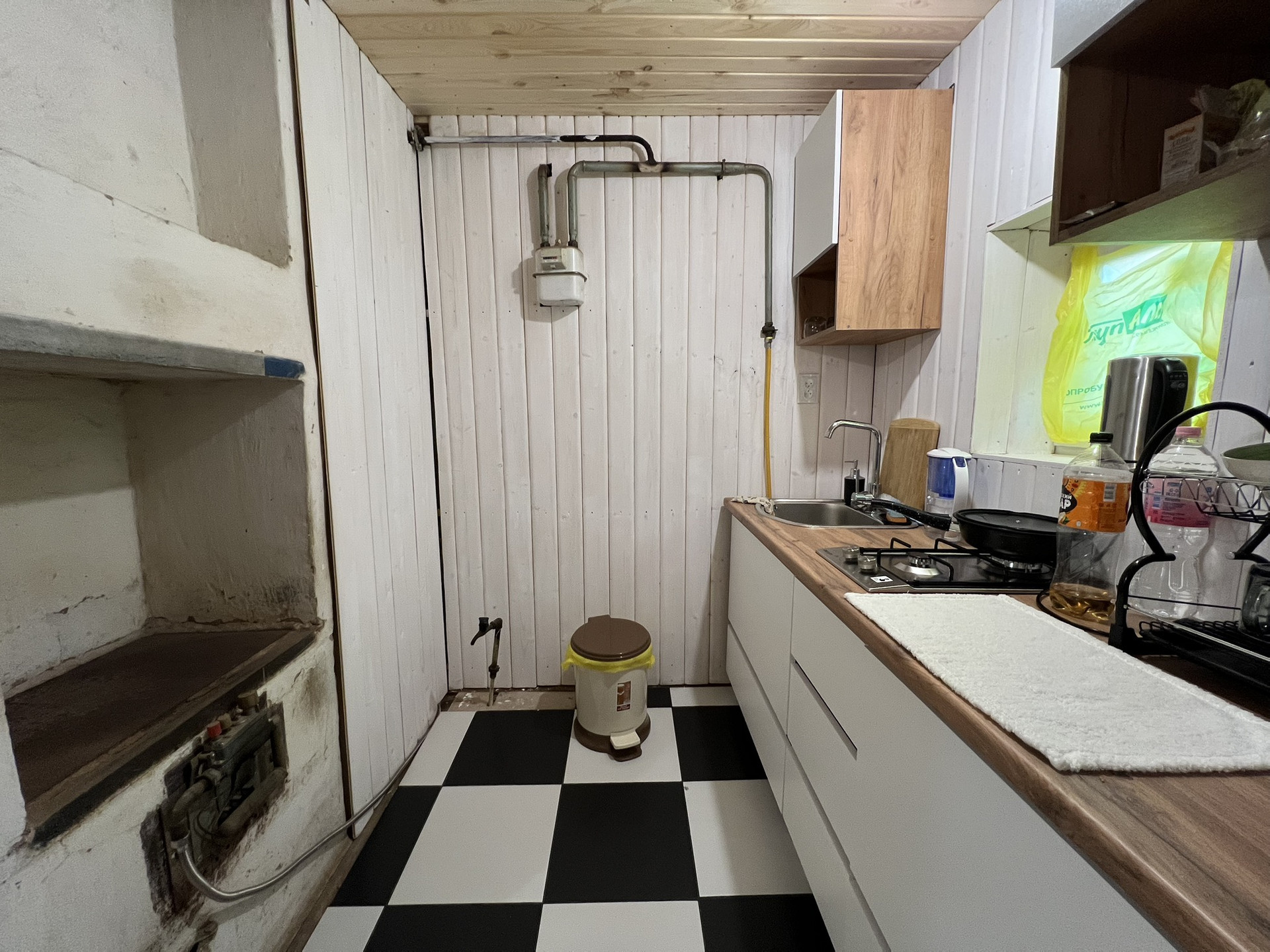 Небольшой уютный дом, полностью обустроен для проживания. Проведены центральная питьевая вода, газ, электричество, новый септик из трех колец, проведен скоростной интернет. В санузле установлена современная душевая кабина, туалет, стиральная машинка, электрический бойлер, раковина со смесителем и зеркалом, вся сантехника новая, на кухне установлен современный кухонный гарнитур со встроенной варочной панелью, раковиной и смесителем, холодильник. Все описанное имущество остается при продаже. Отопление печное газовое, установлены пластиковые окна.