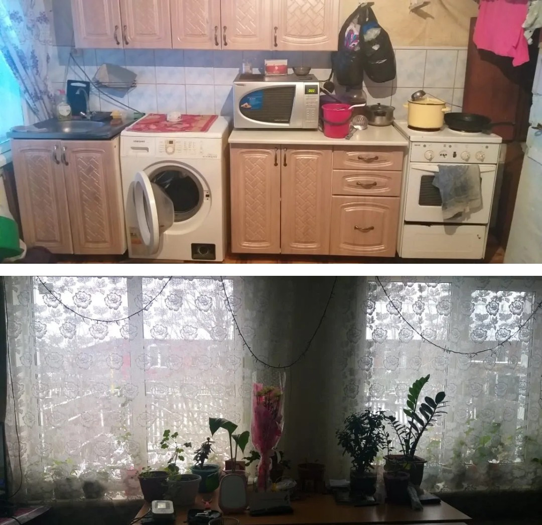 Одна комната и кухня,вода центральная,слив.Отопление печное.