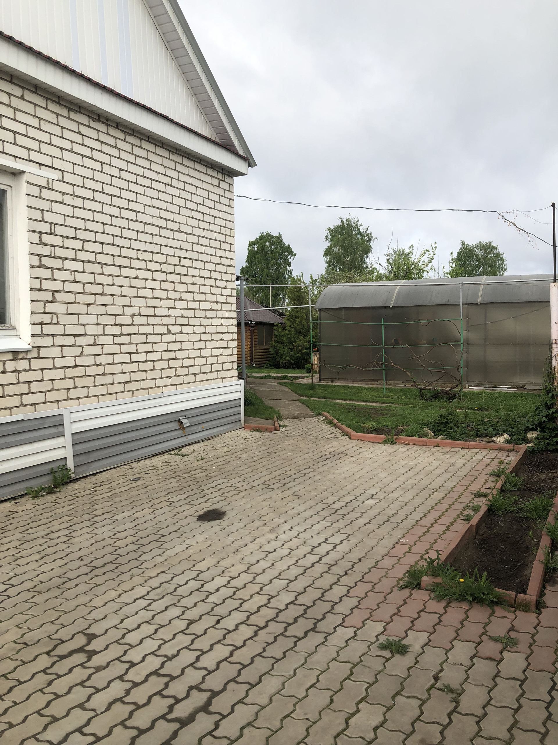 Двор выложен плиткой.
