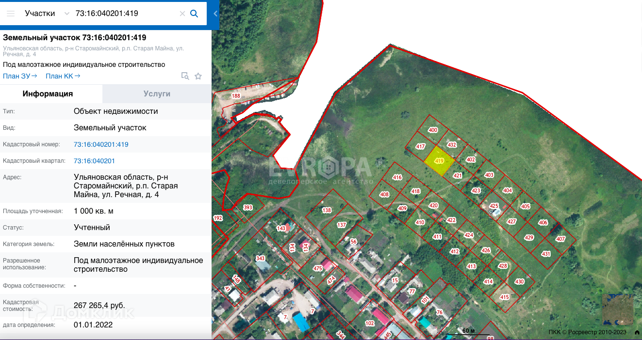 Участок 10 сот. (ИЖС) продаётся в Старой Майне. . Продается: Земельный участок с кадастровым номером 73:16:040201:419, расположенный по адресу: Ульяновская область, р-н Старомайнский, р.п. Старая Майна, ул. Чапаева, д.14, площадью 1000 м², разрешенное использование  под малоэтажное индивидуальное строительство, категория земель - земли населенных пунктов. Ограничения и обременения на земельный участок отсутствуют.