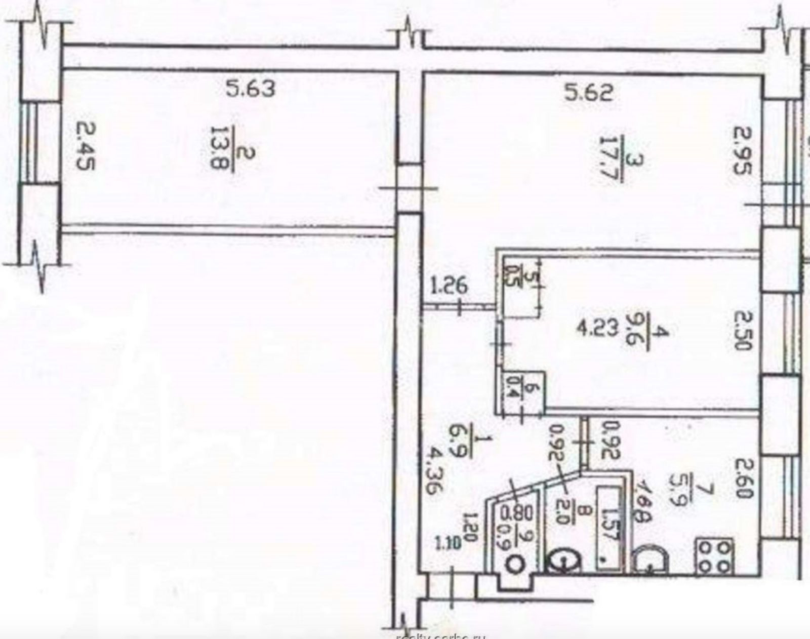 Общая площадь 59.7 м2