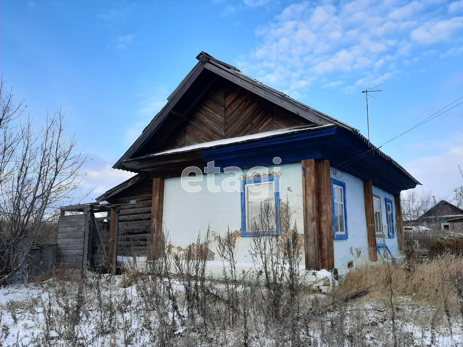 Центральное водоснабжение. Дом из кругляка, сени, кладовая для припасов на зиму, крытое крыльцо.