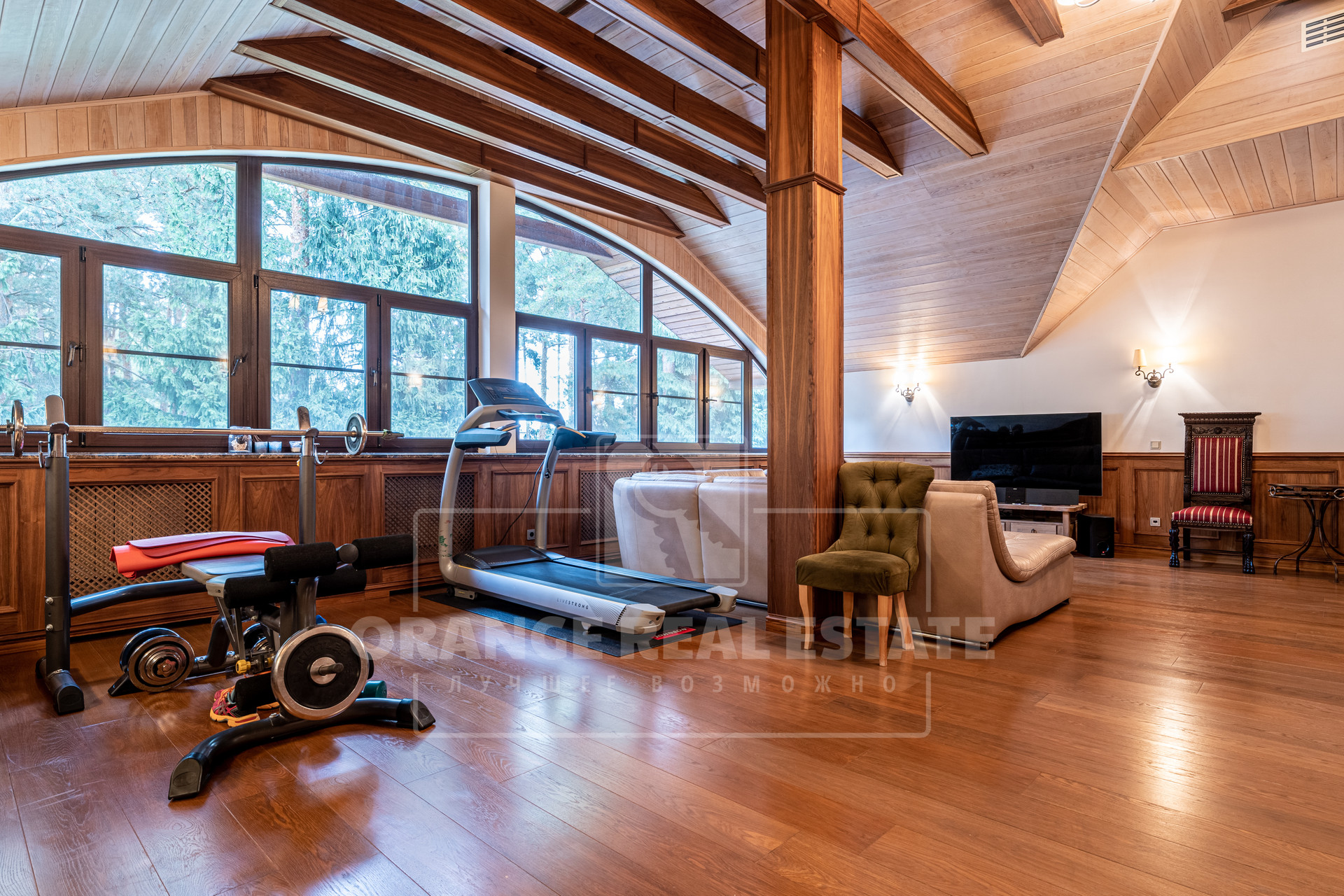 - 3 этаж: спальня с камином, совмещенная с кабинетом и библиотекой, большой зал с кинотеатром, барной стойкой и зоной чилаут, с/у с ванной, душевой кабиной.