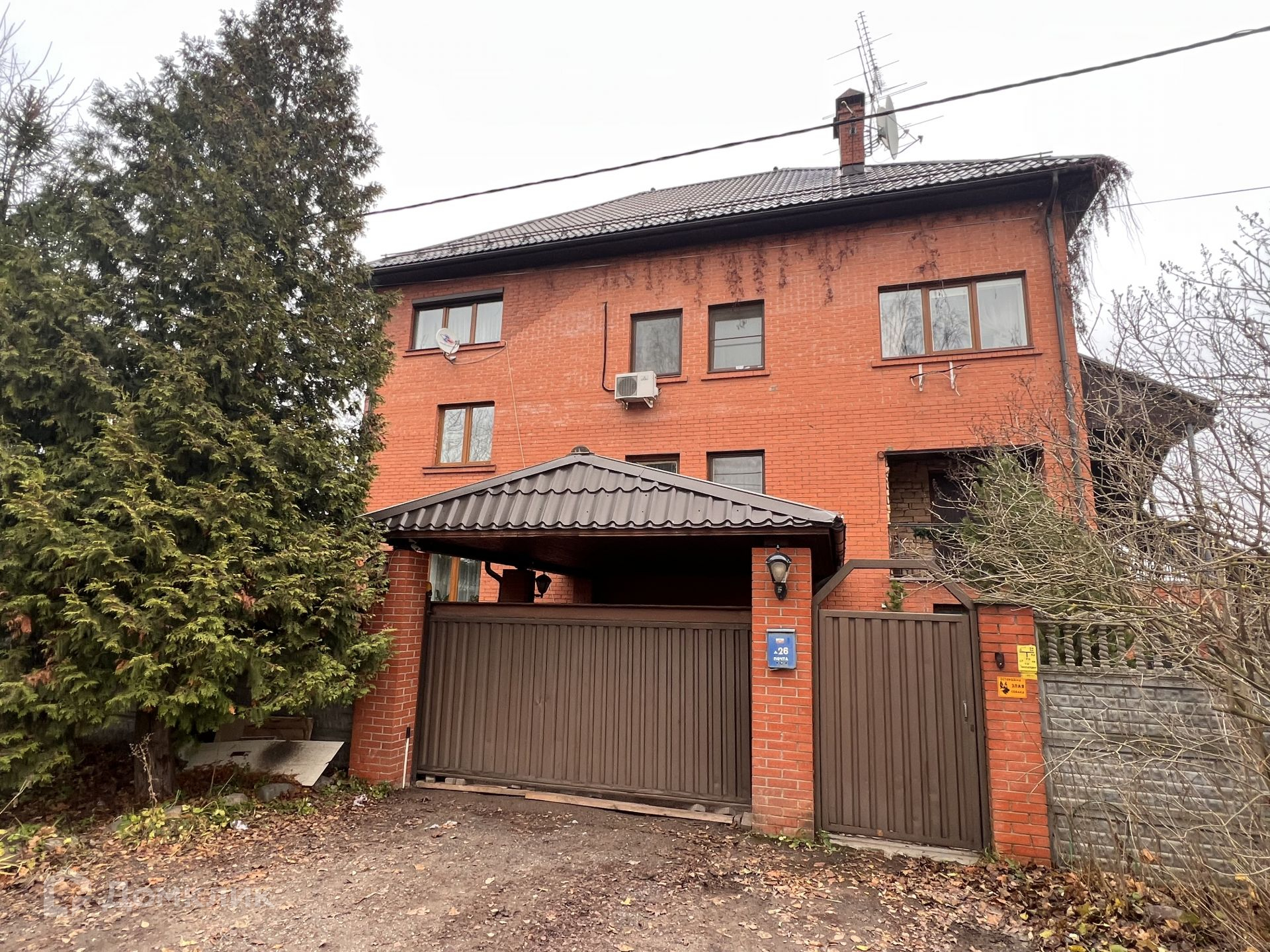 Дом построен из кирпича на ленточном фундаменте. Установлены электрические откатные ворота и калитка.