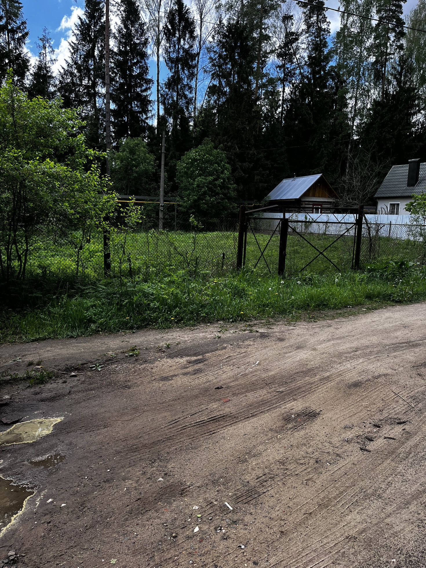 Выровнен, есть фруктовые деревья, вагончик. Недалеко пруд.