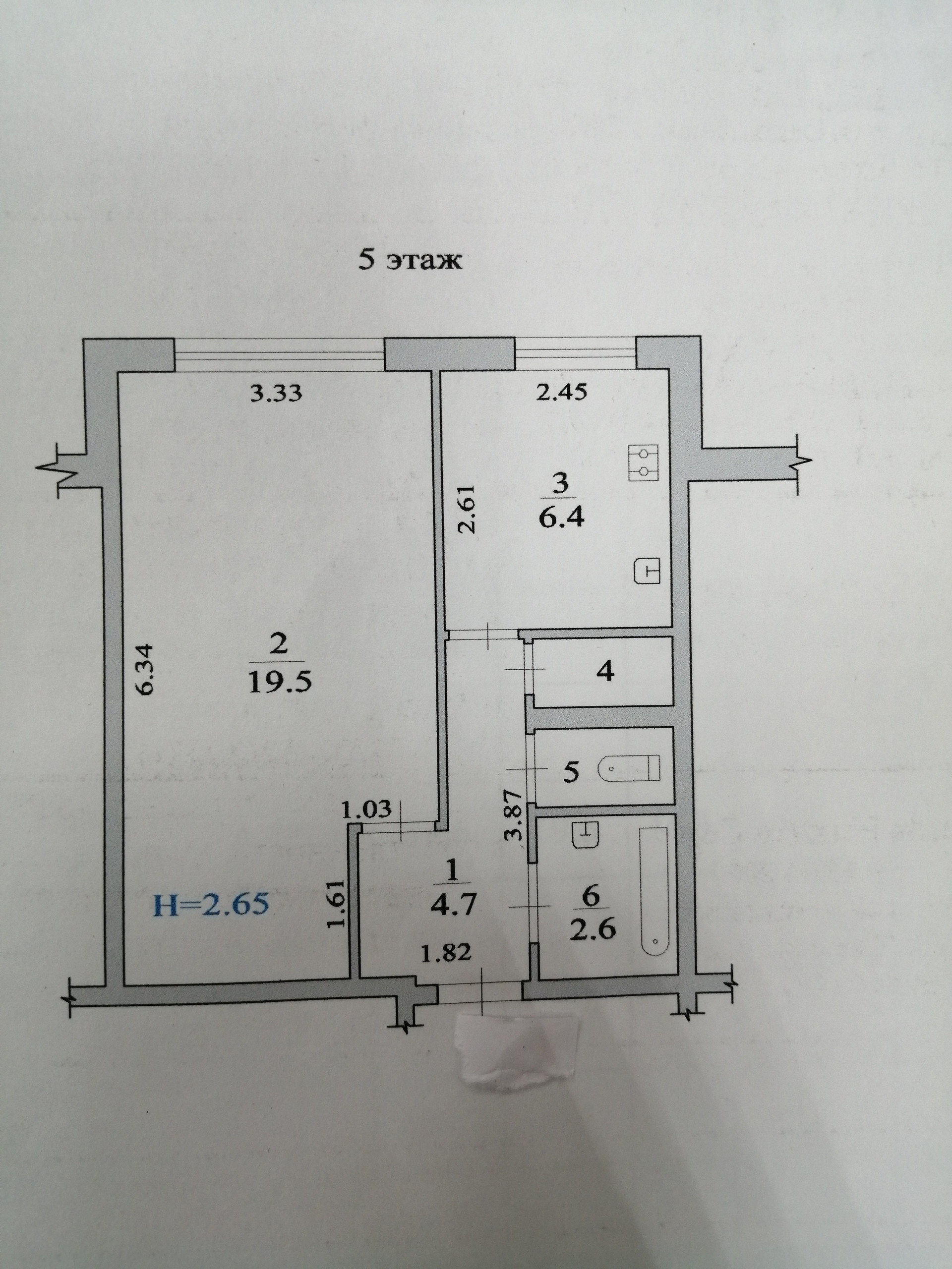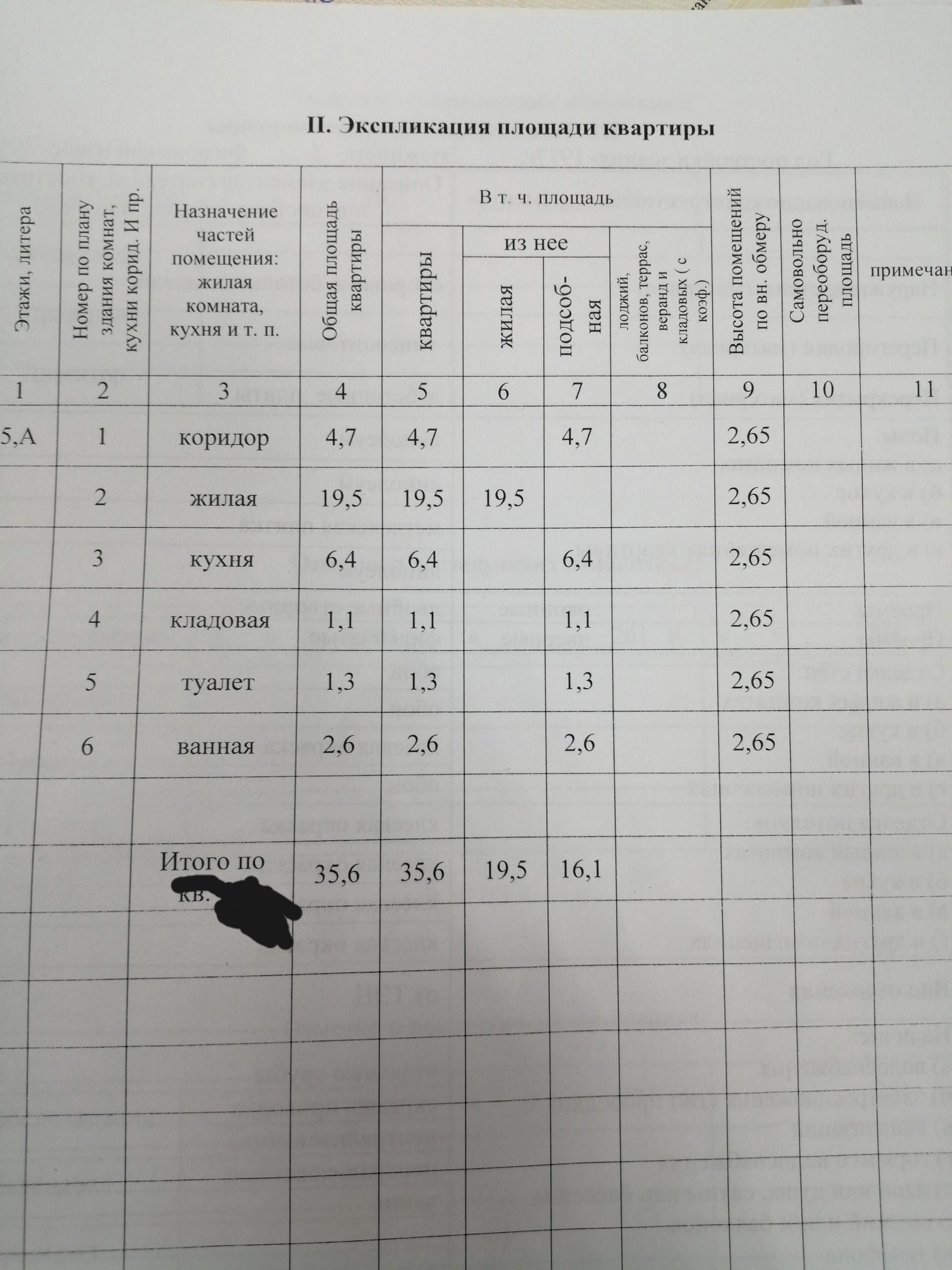 Общая площадь 35.6 м2