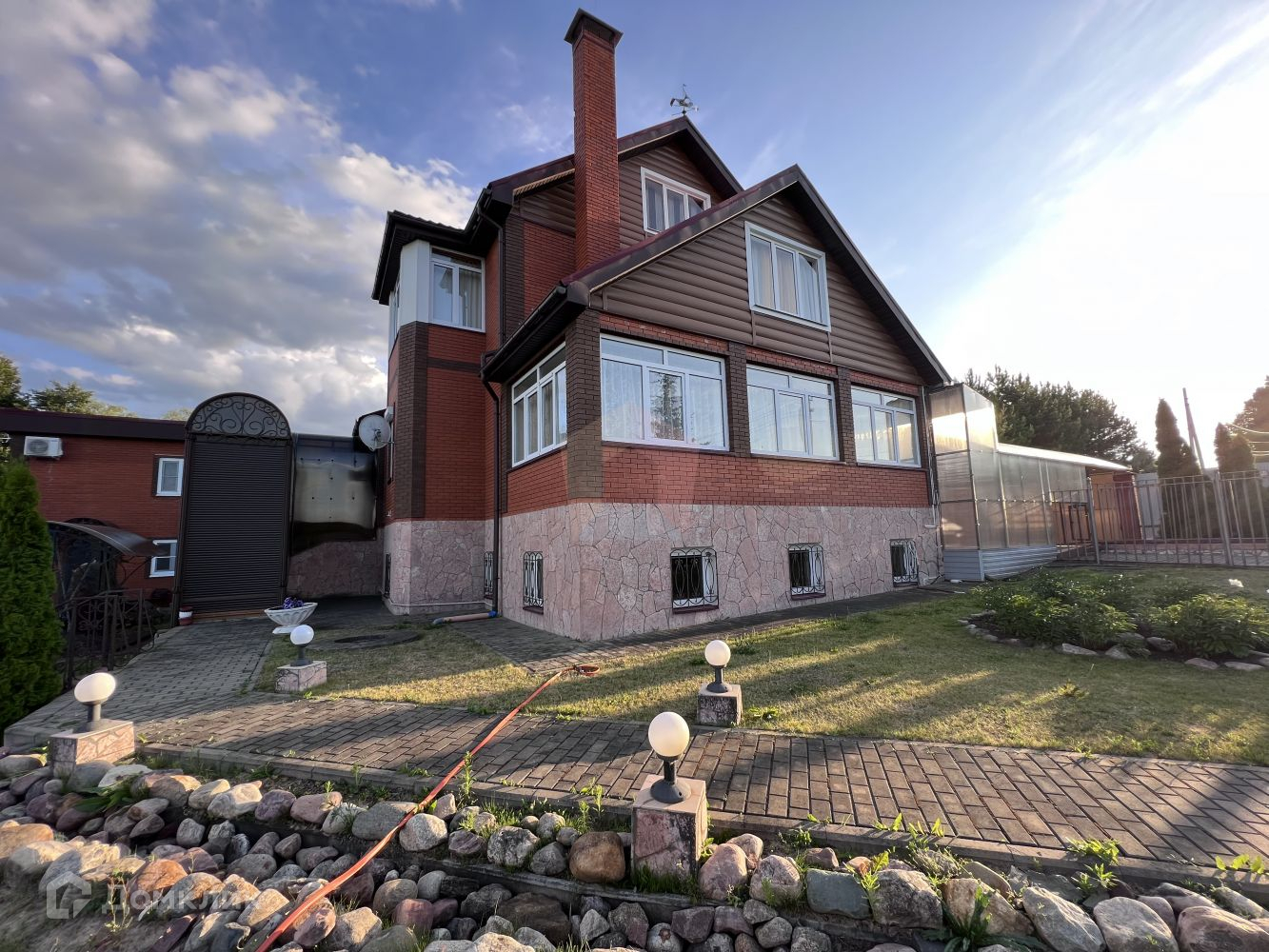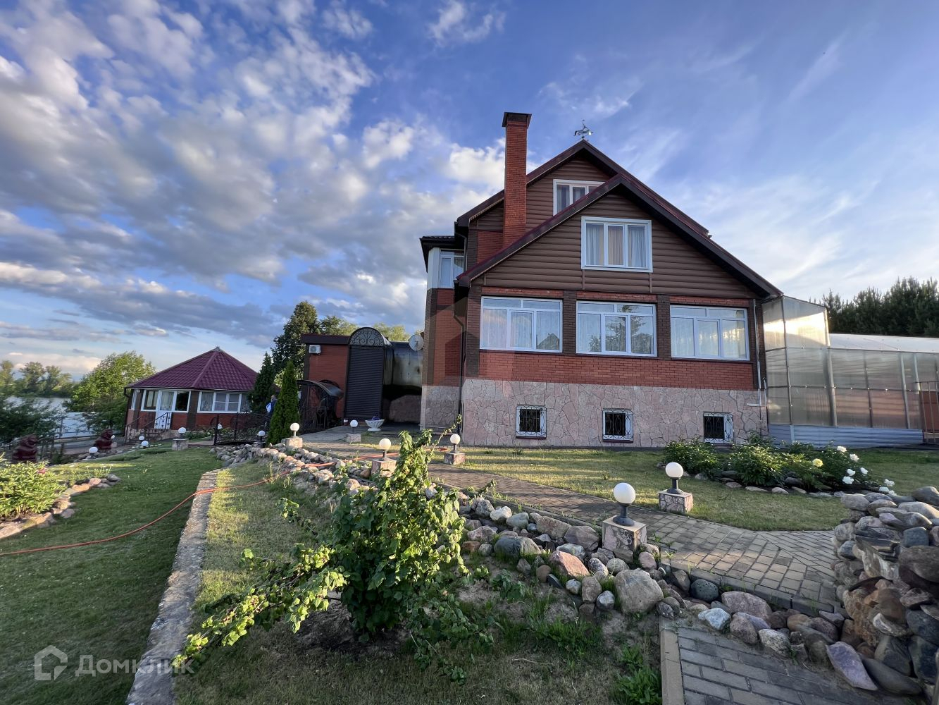 На участке площадью 30 соток, расположен шикарный дом площадью 226.5 метров, полноценный  гостевой дом 80 метров , два гаража, беседка, вольер для собак и многое другое.