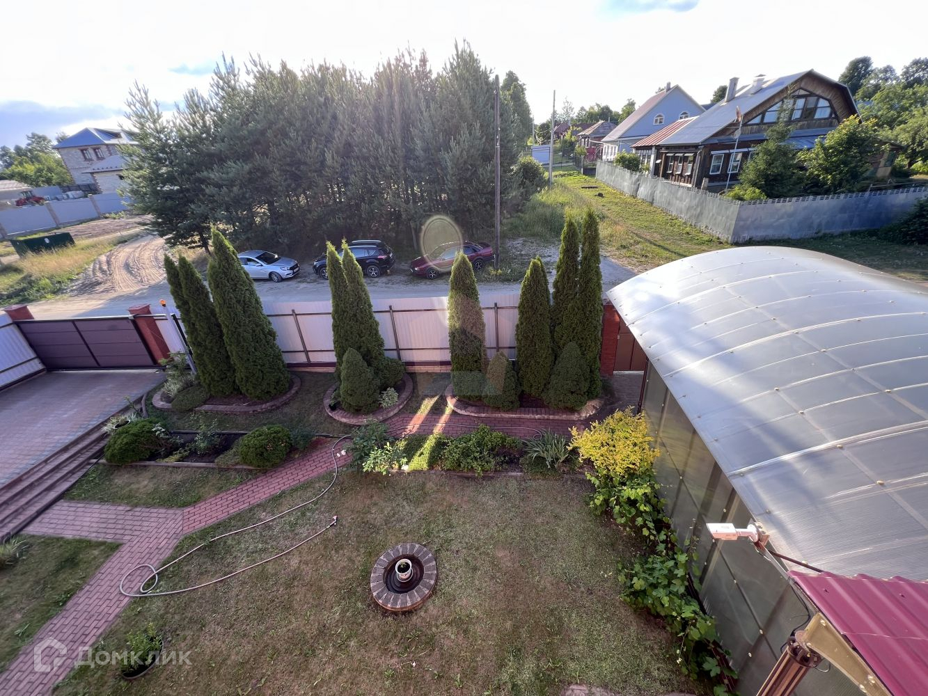 По периметру огорожена забором в сочетании кирпича и профилированного листа, въездная группа с автоматическими воротами, парковочные места для двух и более автомобилей.
