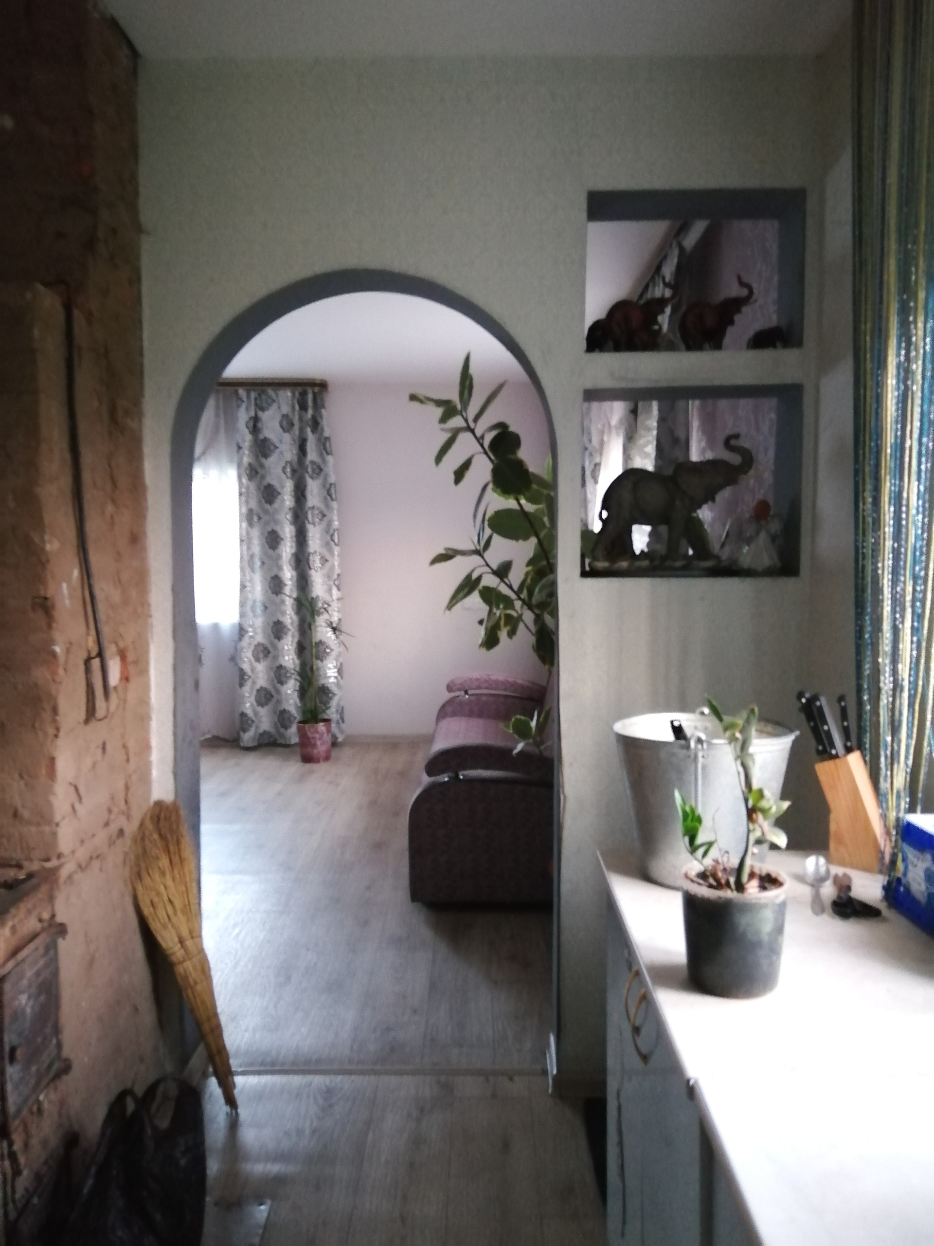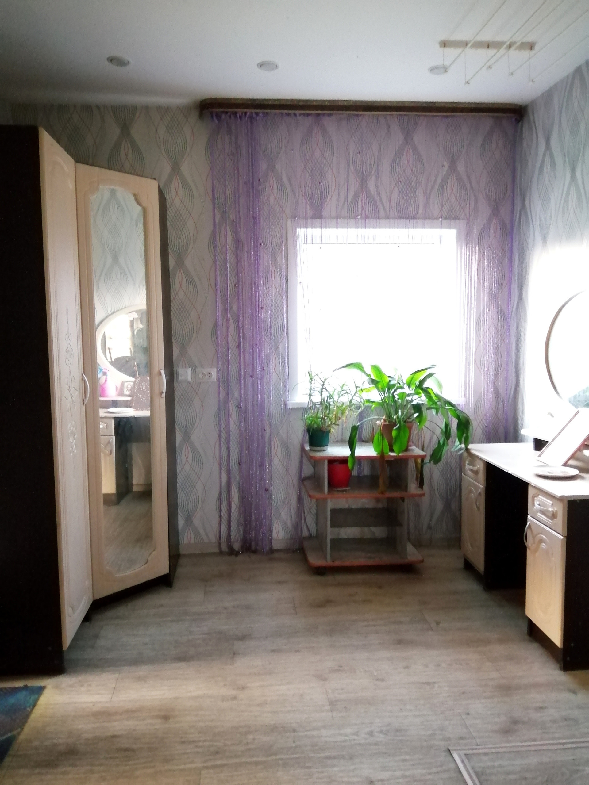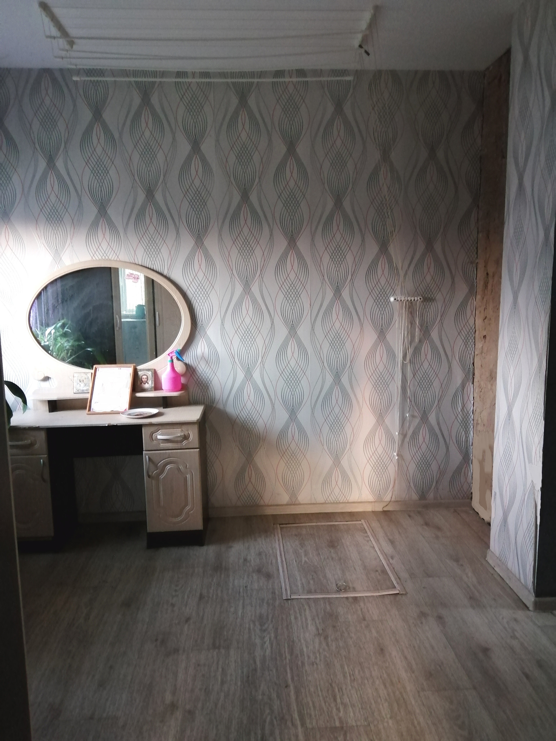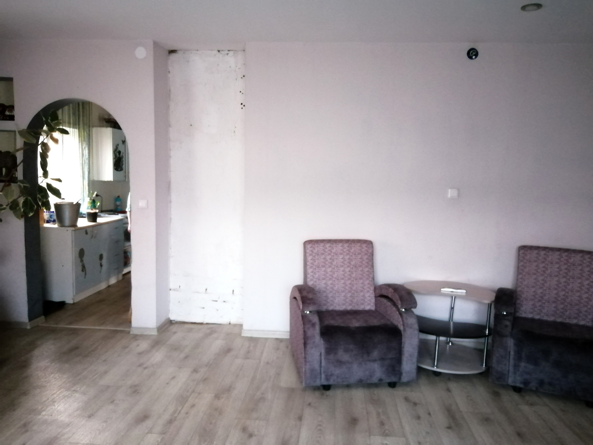 Оставляем кухонный гарнитур, электро печь, кухонный стол.