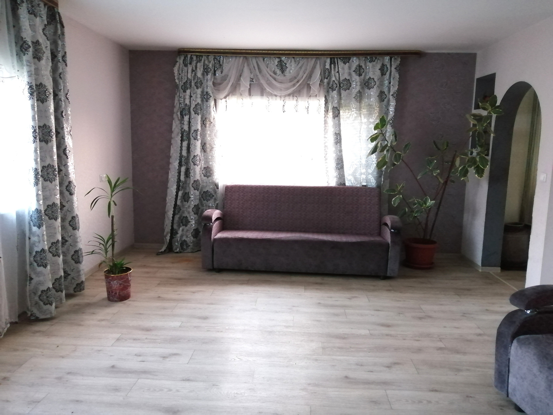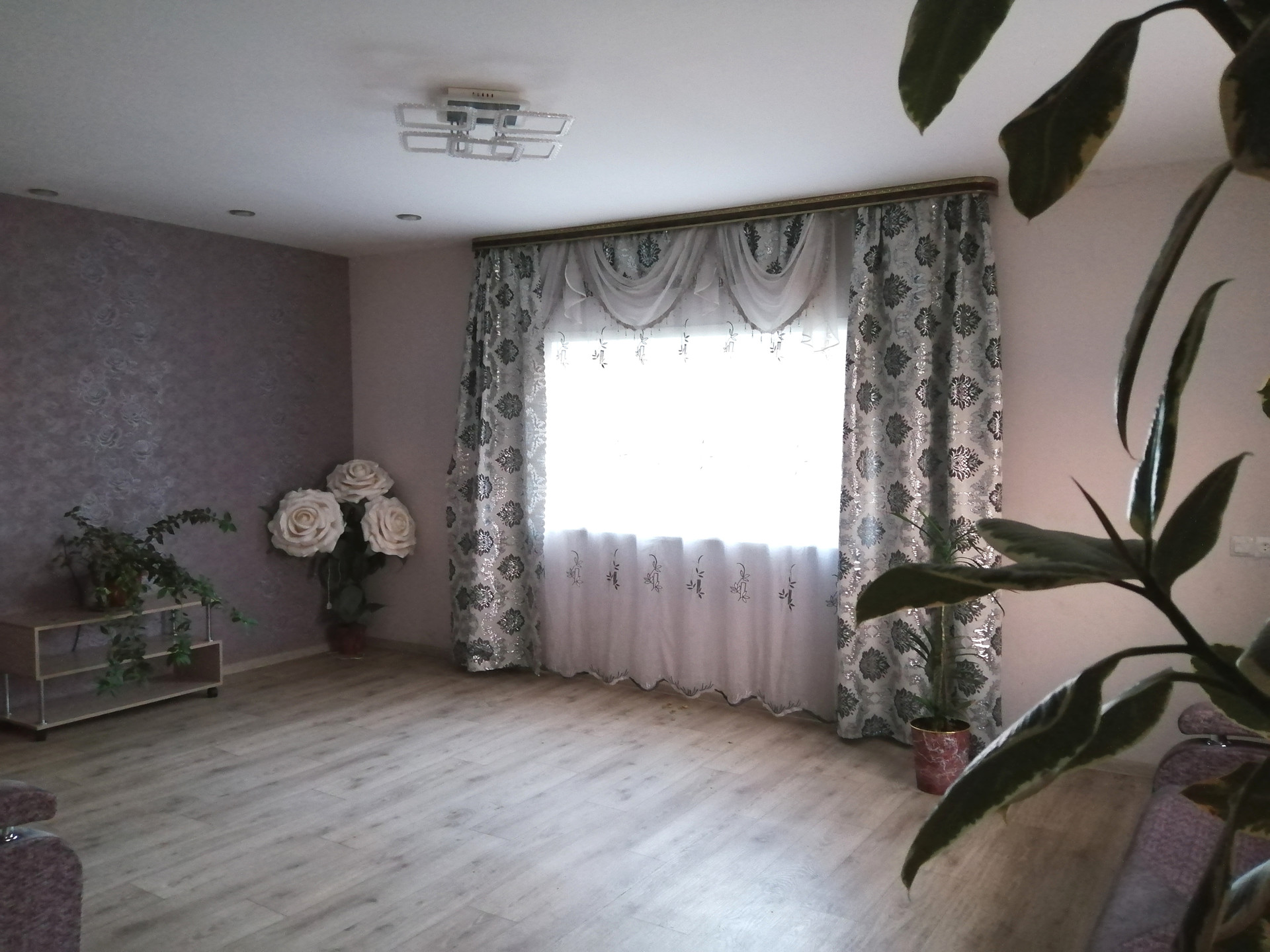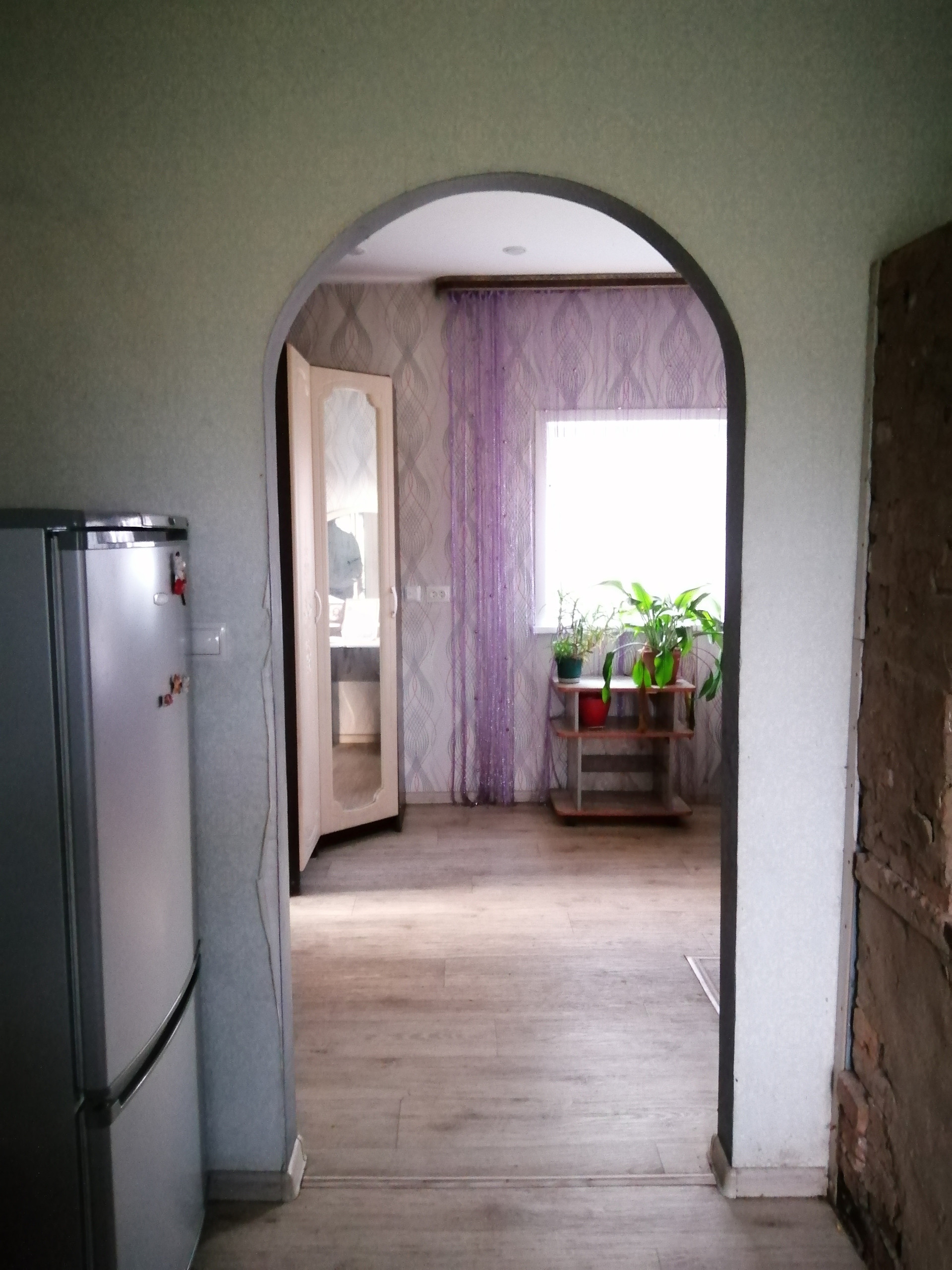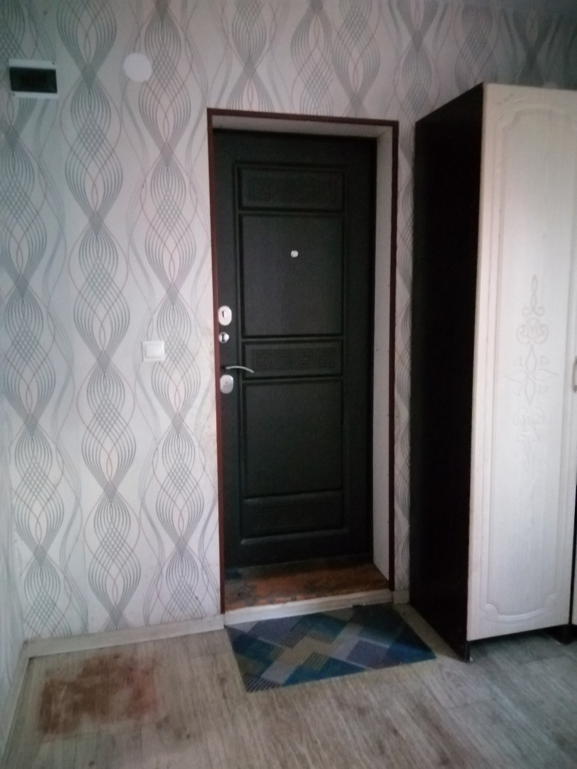Оставляем кухонный гарнитур, электро печь, кухонный стол.