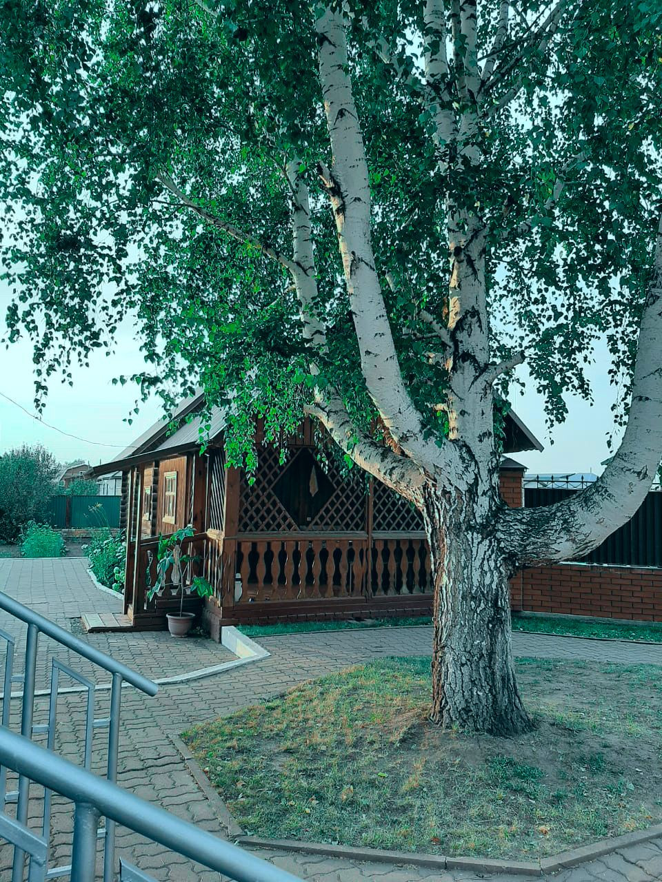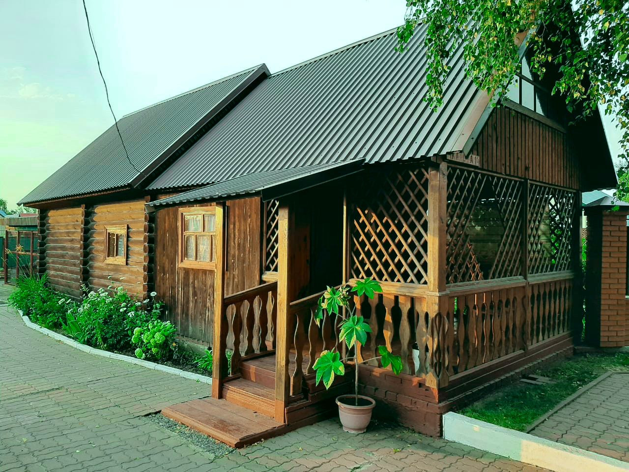 Во дворе тротуарная плитка, баня, беседка, гараж, вольер для собаки, двор засеян газонной травой, водопровод для полива.