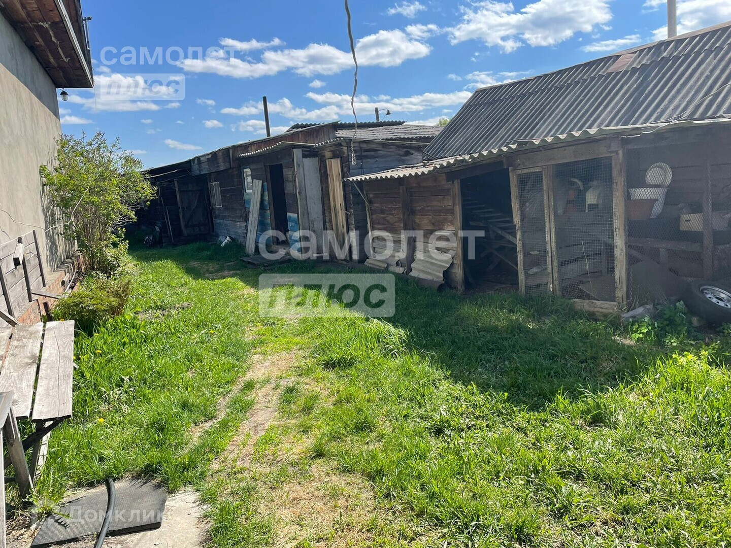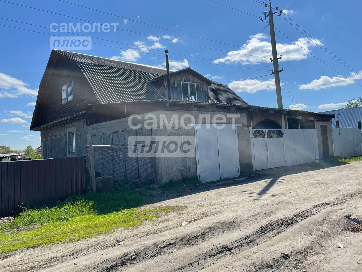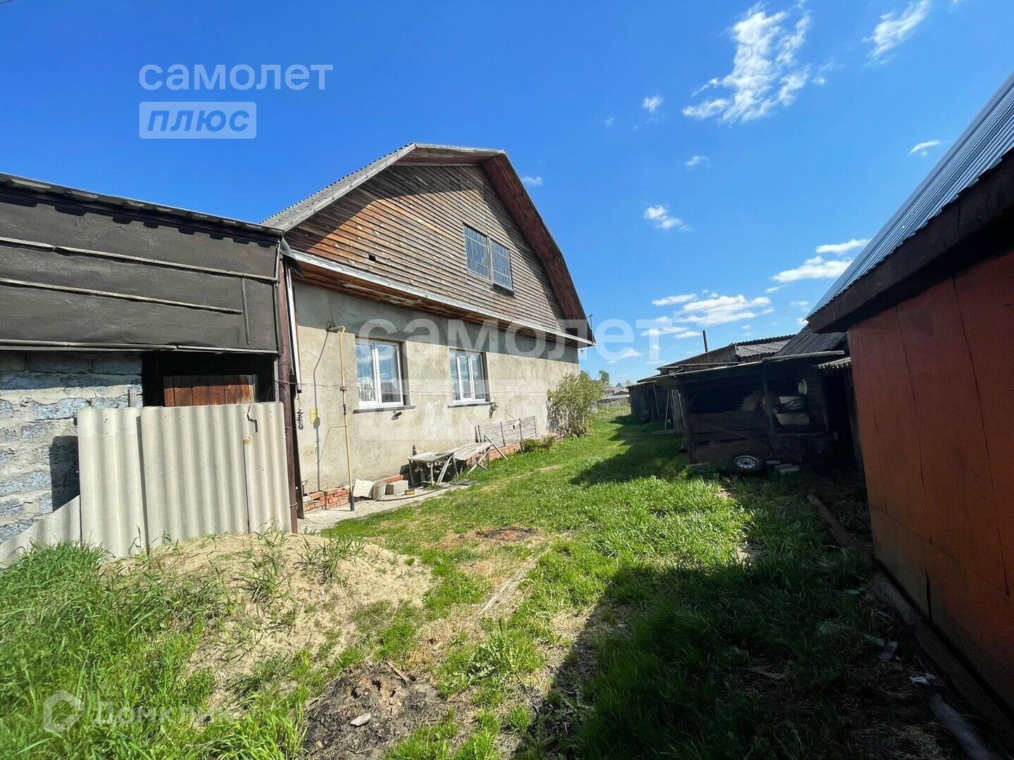 На участке есть теплый гараж, баня, большая теплица, а так же хоз. постройки. Перед домом навес.